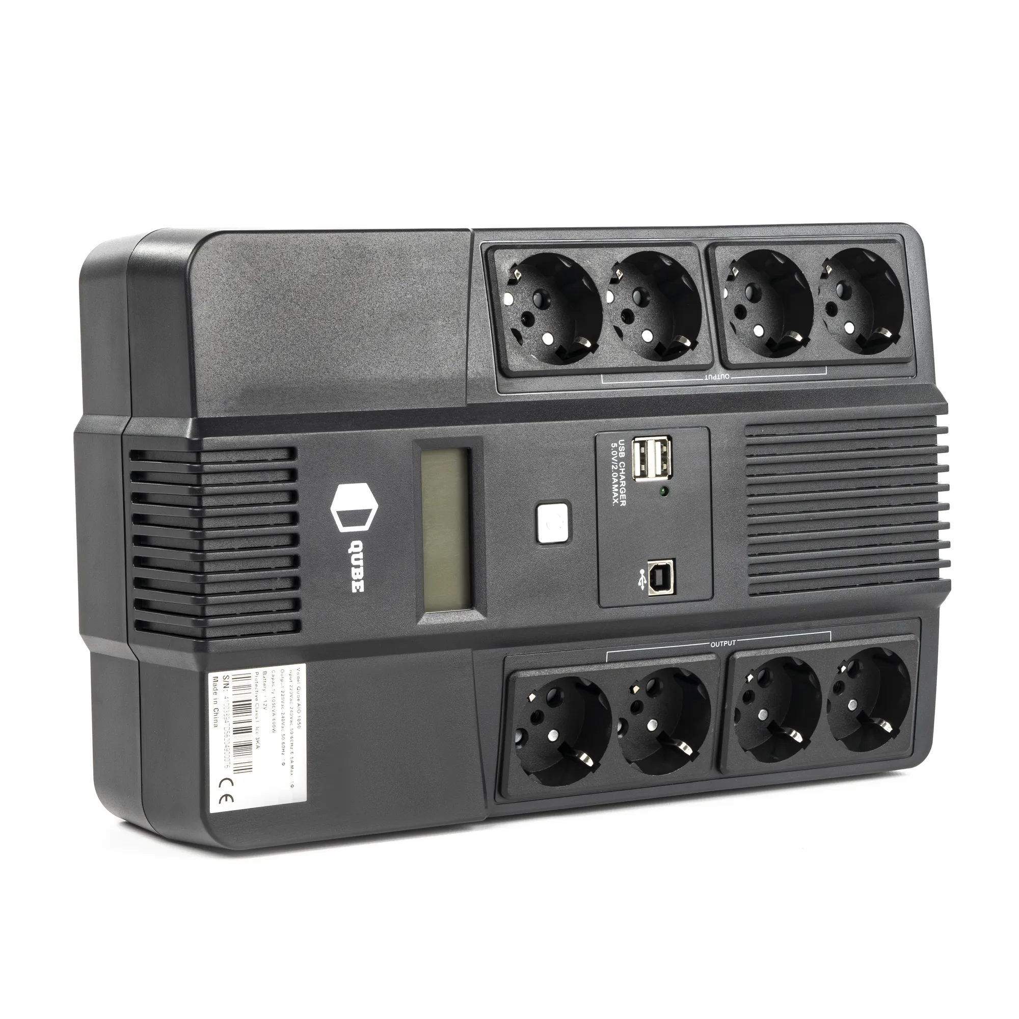 Модель Qube AIO 1050, 1050VA/600W, LCD, 8 x Schuko, RJ-45, USB призначена для ПК та робочих станцій і має ряд характеристик: