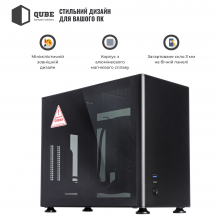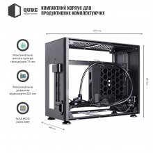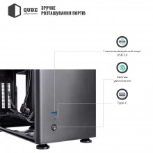 Корпус QUBE A4 Black (QBA4I_WBNU3) / MiniTower / mini-ITX / 1xUSB3.0 + 1xUSB3.1 Type-C / 1x3.5", 2x2.5"--- / 273x169x340 / Black / 12міс. / QBA4I_WBNU3