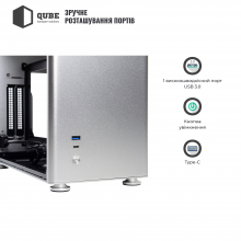 Корпус QUBE A4 Silver (QBA4I_WSNU3) / MiniTower / mini-ITX / 1xUSB3.0 + 1xUSB3.1 Type-C / 1x3.5", 2x2.5"--- / 273x169x340 / Silver / 12міс. / QBA4I_WSNU3