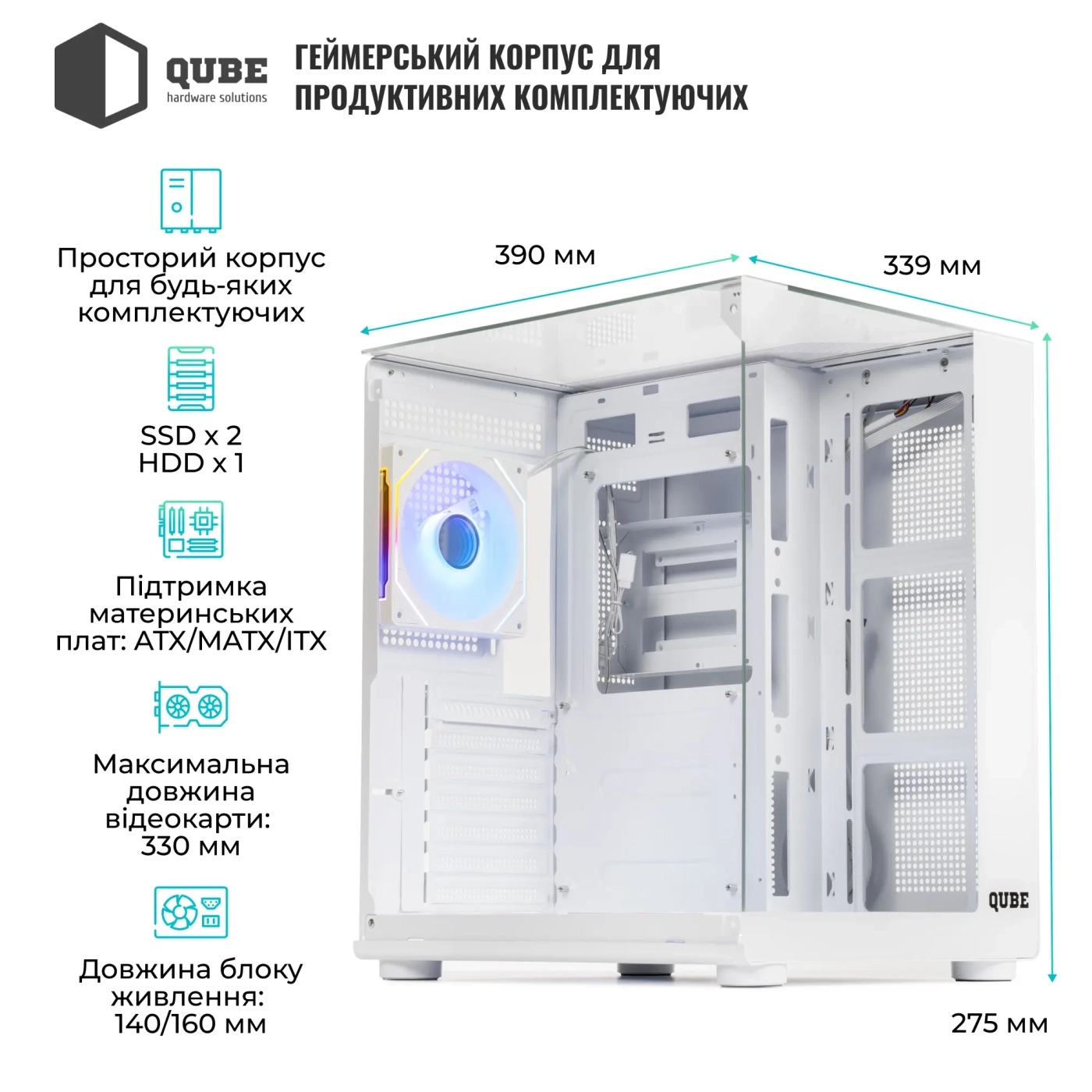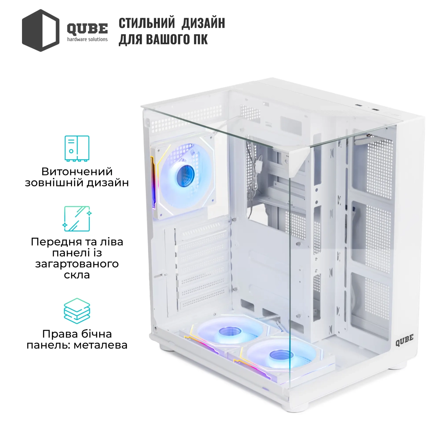 Купити QUBE AQUARIUM ARGB White (AQUARIUM_GWNU3) – сучасний корпус з продуманою ергономікою