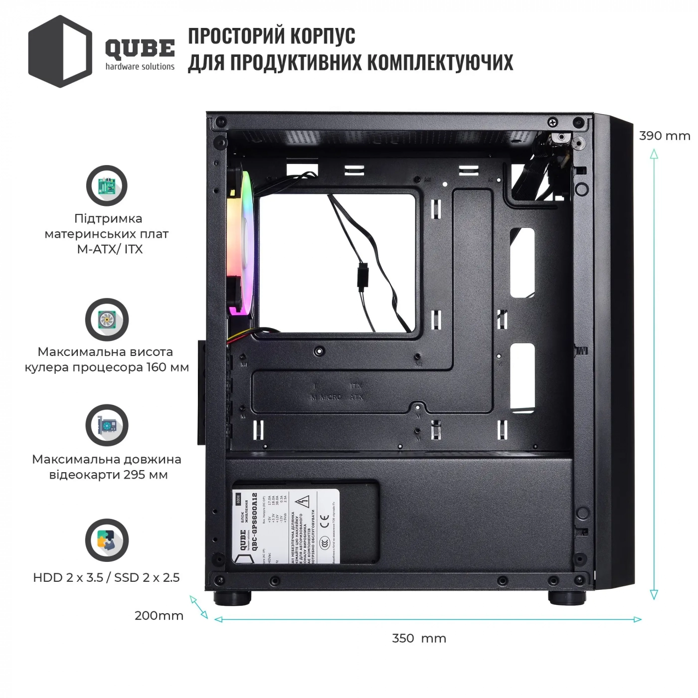 Корпус QUBE BLOCK 500W Black (BLOCK_F5MU3) / MiniTower / microATX | mini-ITX / 500W / Front: 2x120mm RGB / Rear: 1x120mm RGB / 1хUSB3.0 + 2хUSB2.0 + Audio + Mic / 2x3.5" / 1x2.5" / 390x200x350 / Чорний / 12міс. / BLOCK_F5MU3