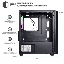 Фірмові корпуси QUBE відрізняються сучасним дизайном, продуманою конструкцією, відмінним функціоналом та дружні до будь-якого користувача, який зважився на самостійну збірку всіх необхідних комплектуючих у готовий персональний комп'ютер.