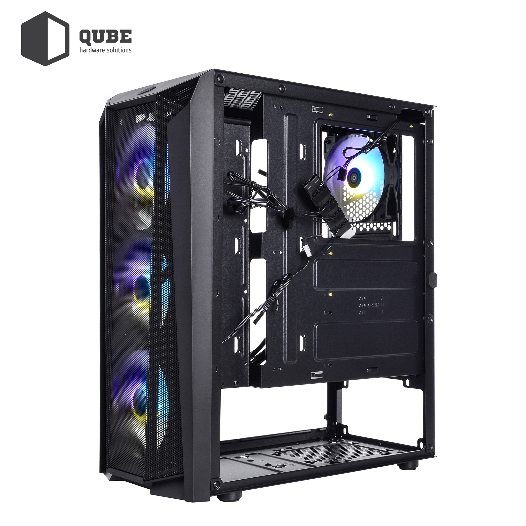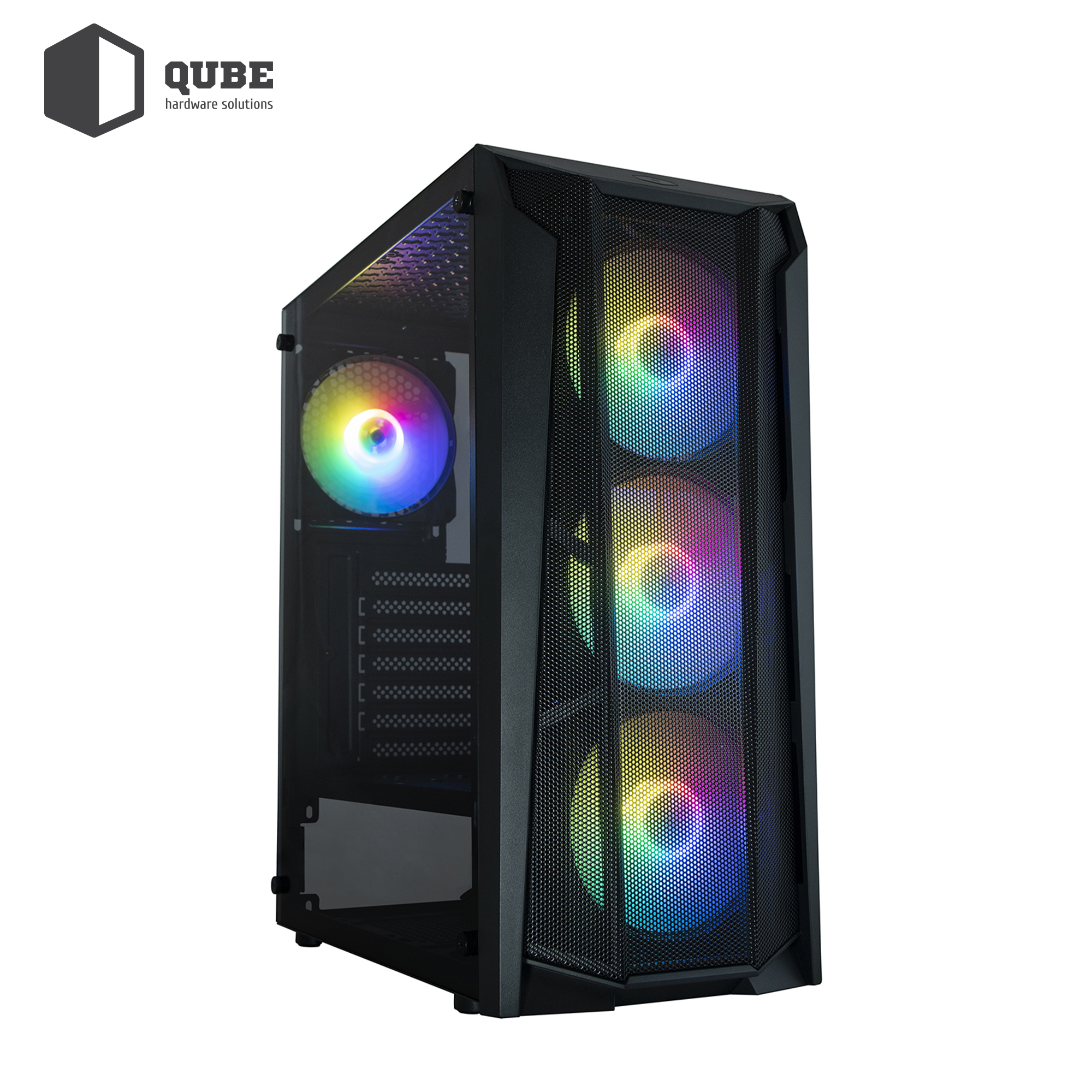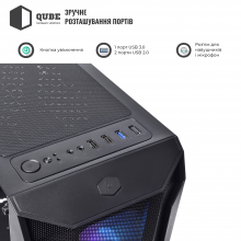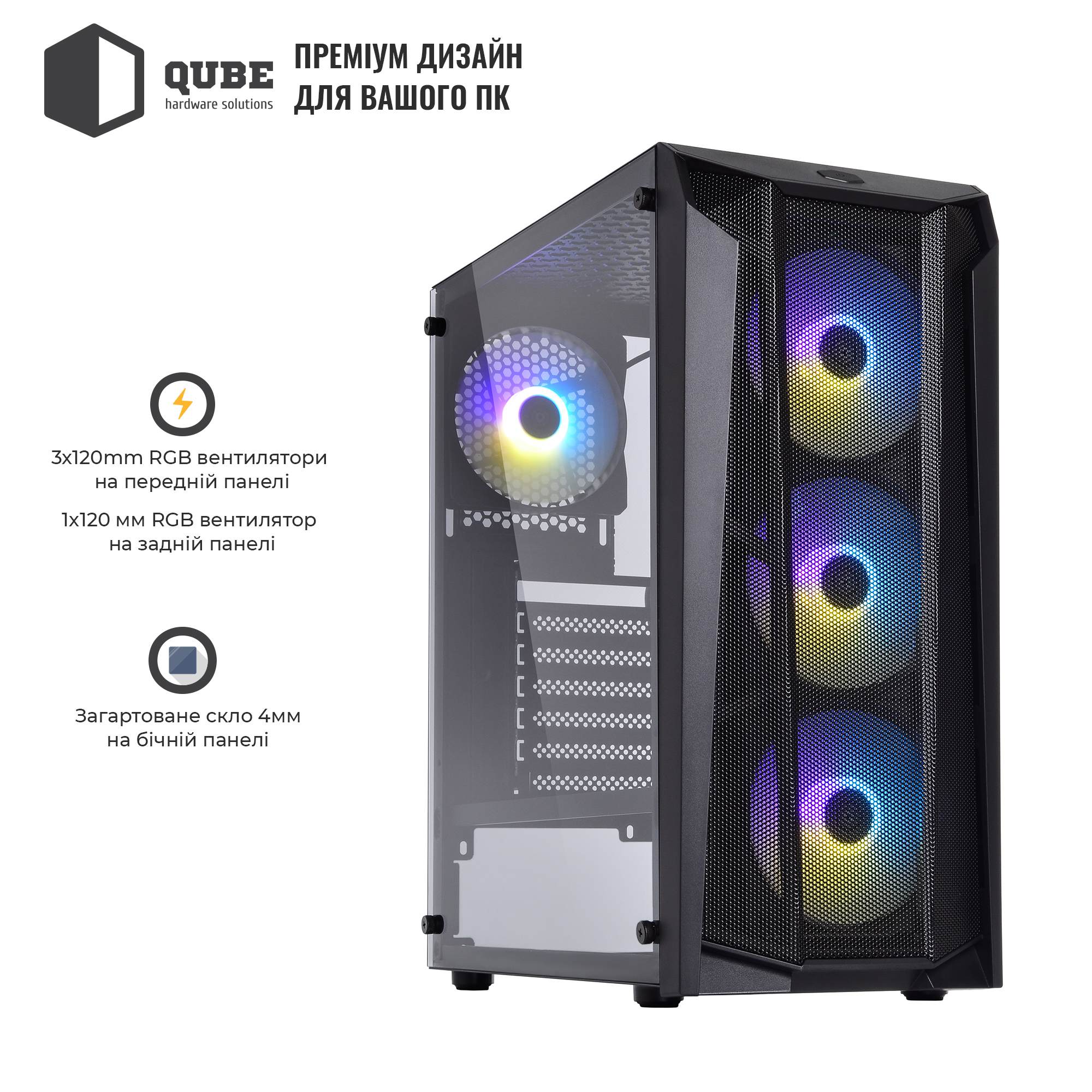 Корпус QUBE BOREY (BOREY_F5NU3) / MiddleTower / ATX | microATX / 3x120mm ARGB LED fans (Front) + 1x120mm ARGB LED fan (Rear) / 2xUSB2.0 + 1xUSB3.0 + Audio + Mic / 2x3.5" / 2x2.5" / 390x190x440 / Black / 12міс. / BOREY_F5NU3
