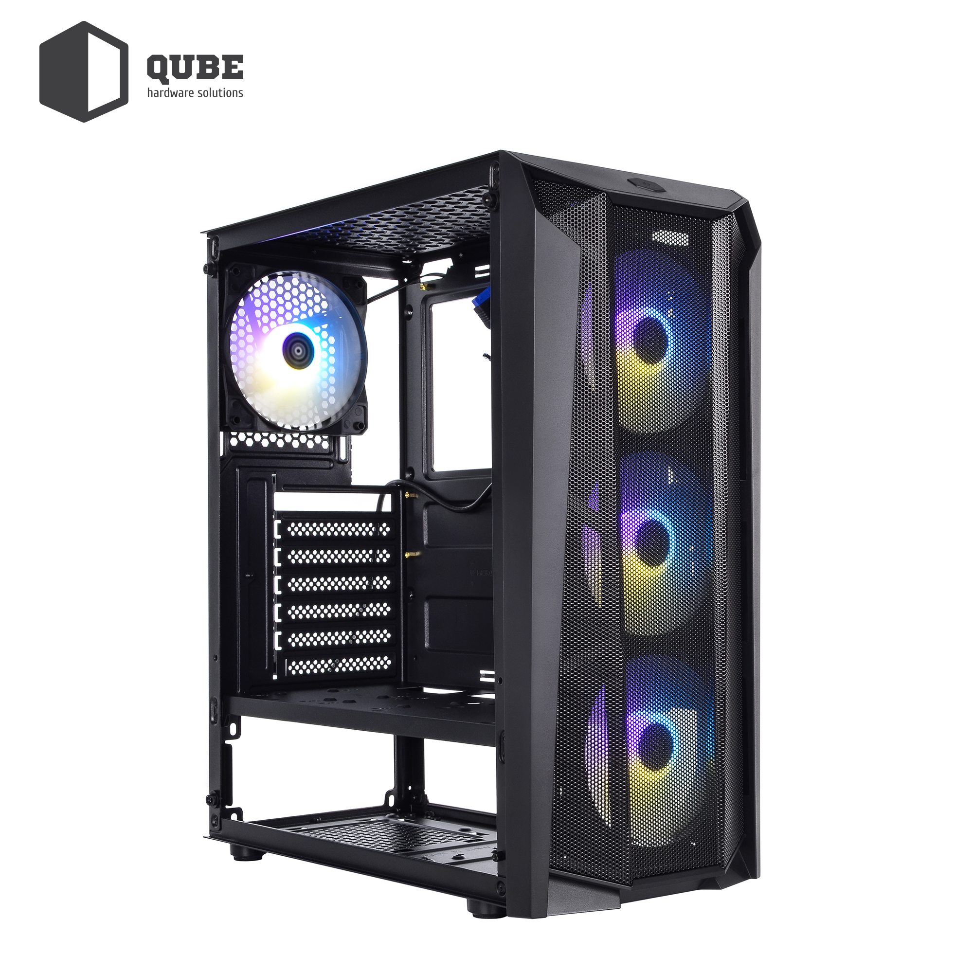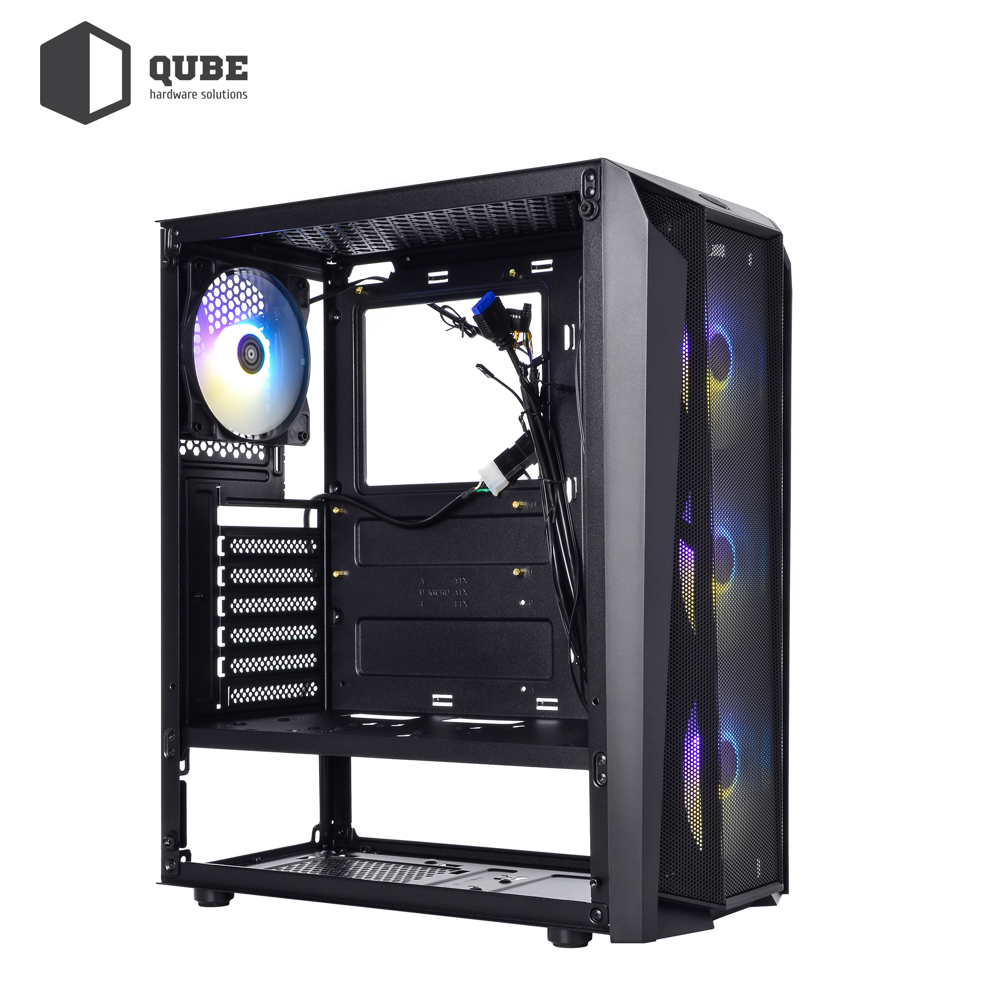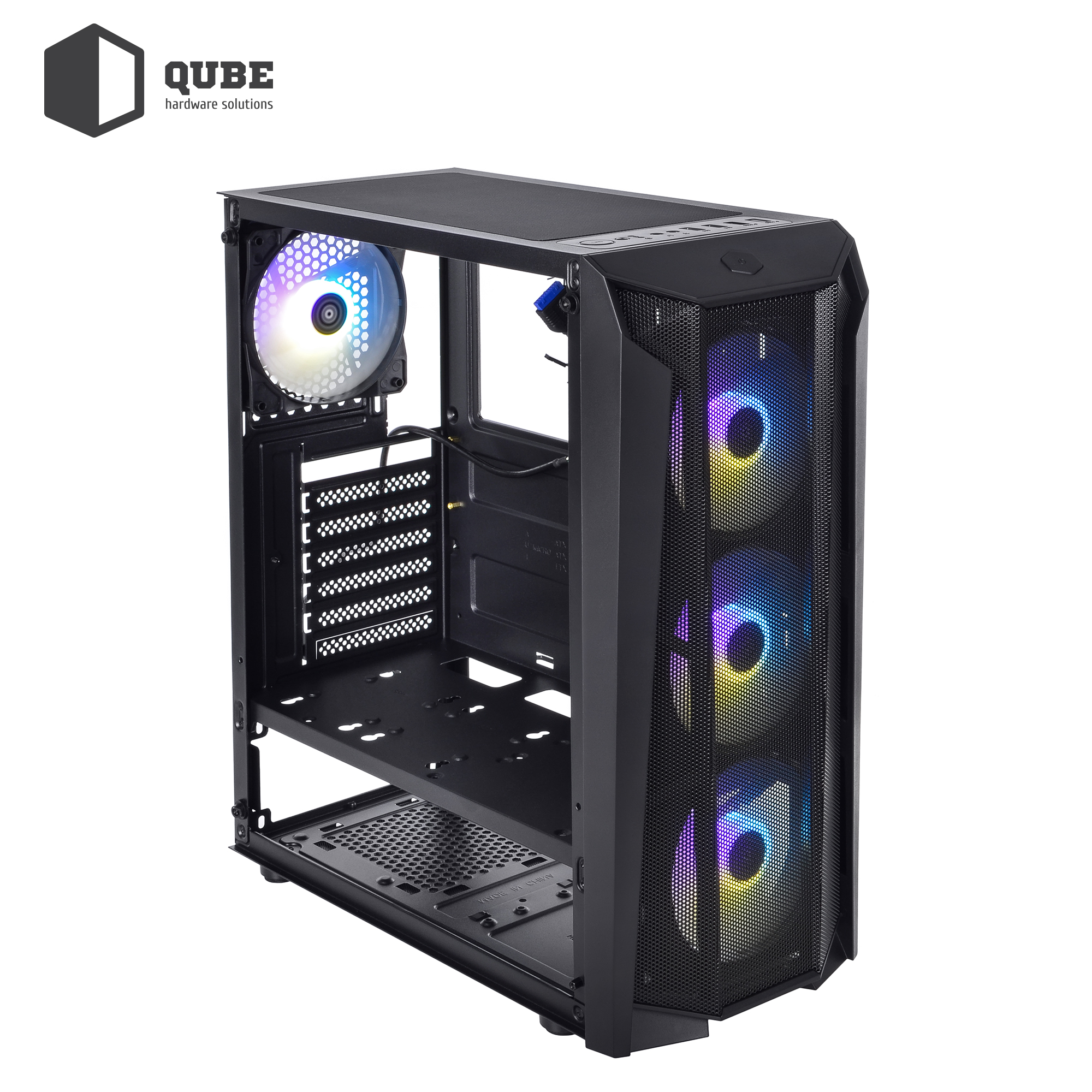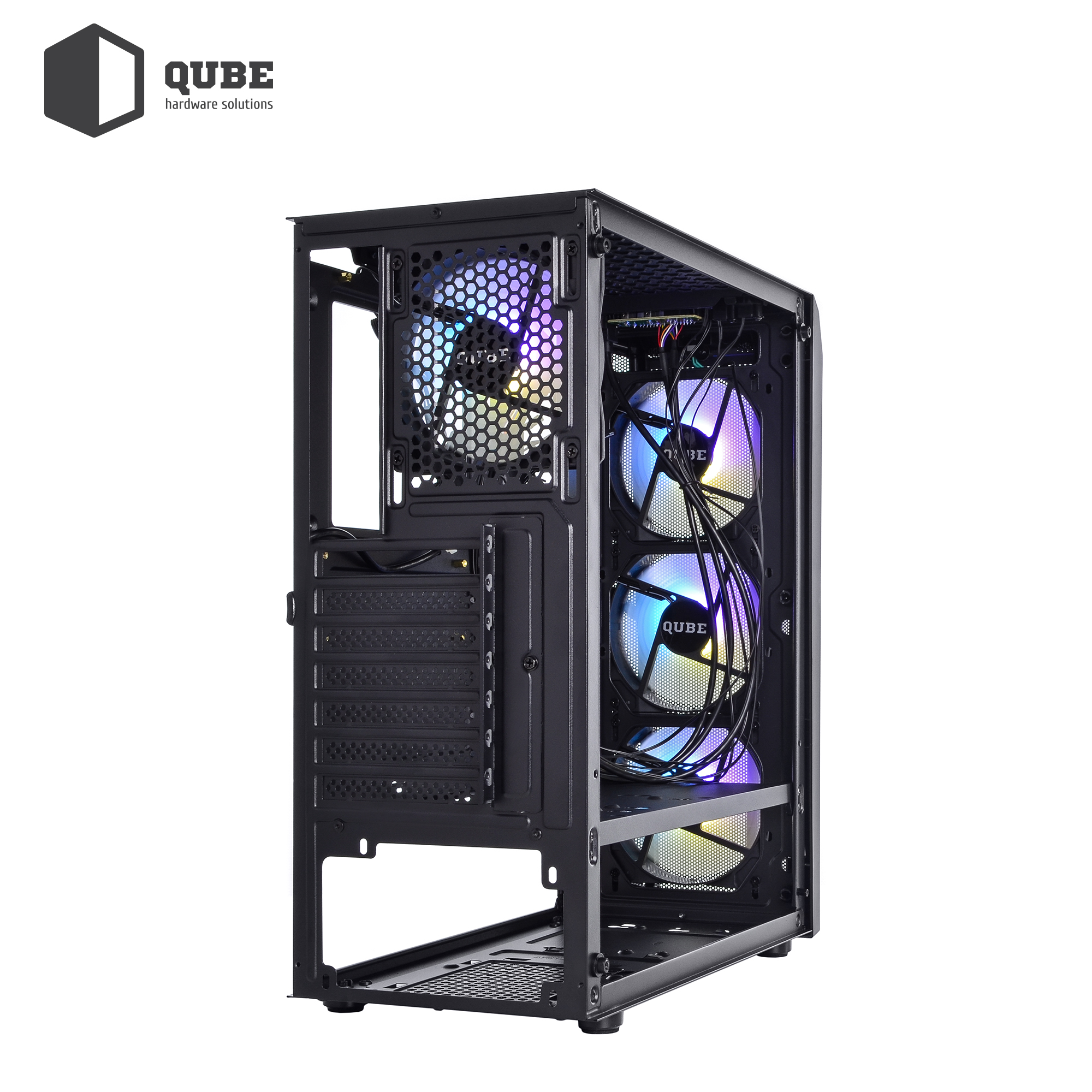 Корпус QUBE BOREY (BOREY_F5NU3) / MiddleTower / ATX | microATX / 3x120mm ARGB LED fans (Front) + 1x120mm ARGB LED fan (Rear) / 2xUSB2.0 + 1xUSB3.0 + Audio + Mic / 2x3.5" / 2x2.5" / 390x190x440 / Black / 12міс. / BOREY_F5NU3