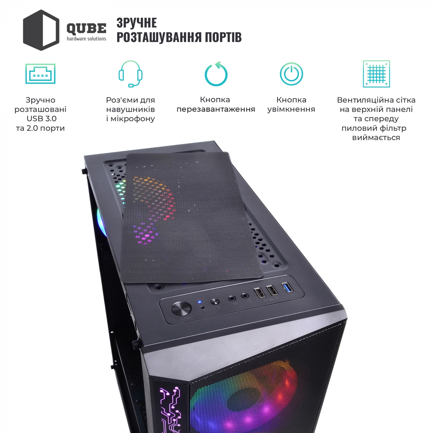 Фірмові корпуси QUBE відрізняються сучасним дизайном, продуманою конструкцією, відмінним функціоналом і дружні до будь-якого користувача, який зважився на самостійну збірку всіх необхідних комплектуючих в готовий персональний комп'ютер.