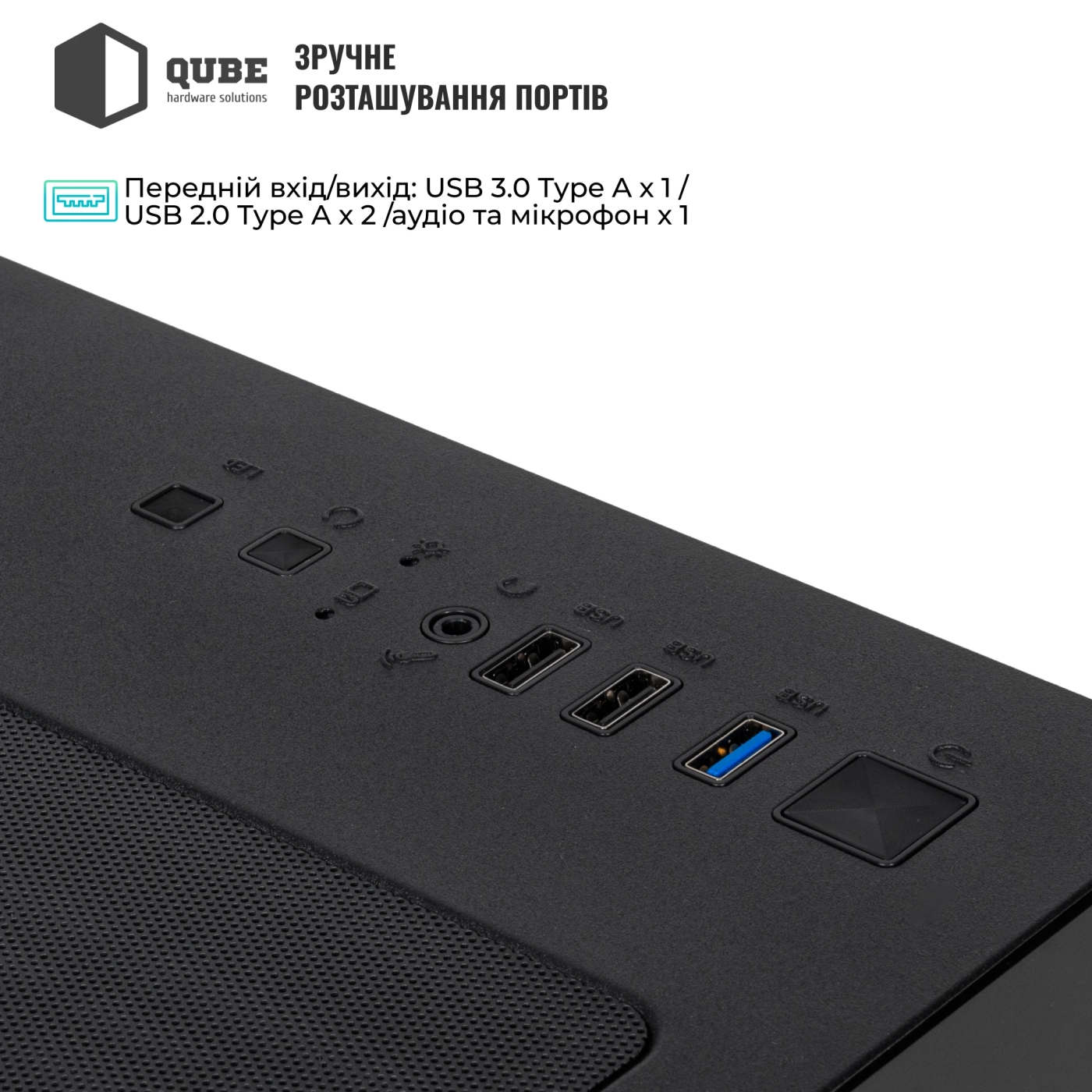 На передній панелі корпусу розташовані USB-порти і аудіороз'єми, що значно спрощує підключення зовнішніх пристроїв та периферії. Вам не доведеться кожного разу тягнутися до задньої панелі, щоб підключити навушники, флешку або контролери — все під рукою! Зручне розташування портів і роз'ємів робить QUBE CRYSTAL ARGB Black по-справжньому практичним і зручним для щоденного використання. ??