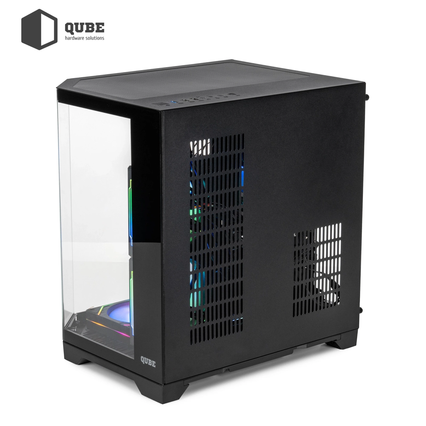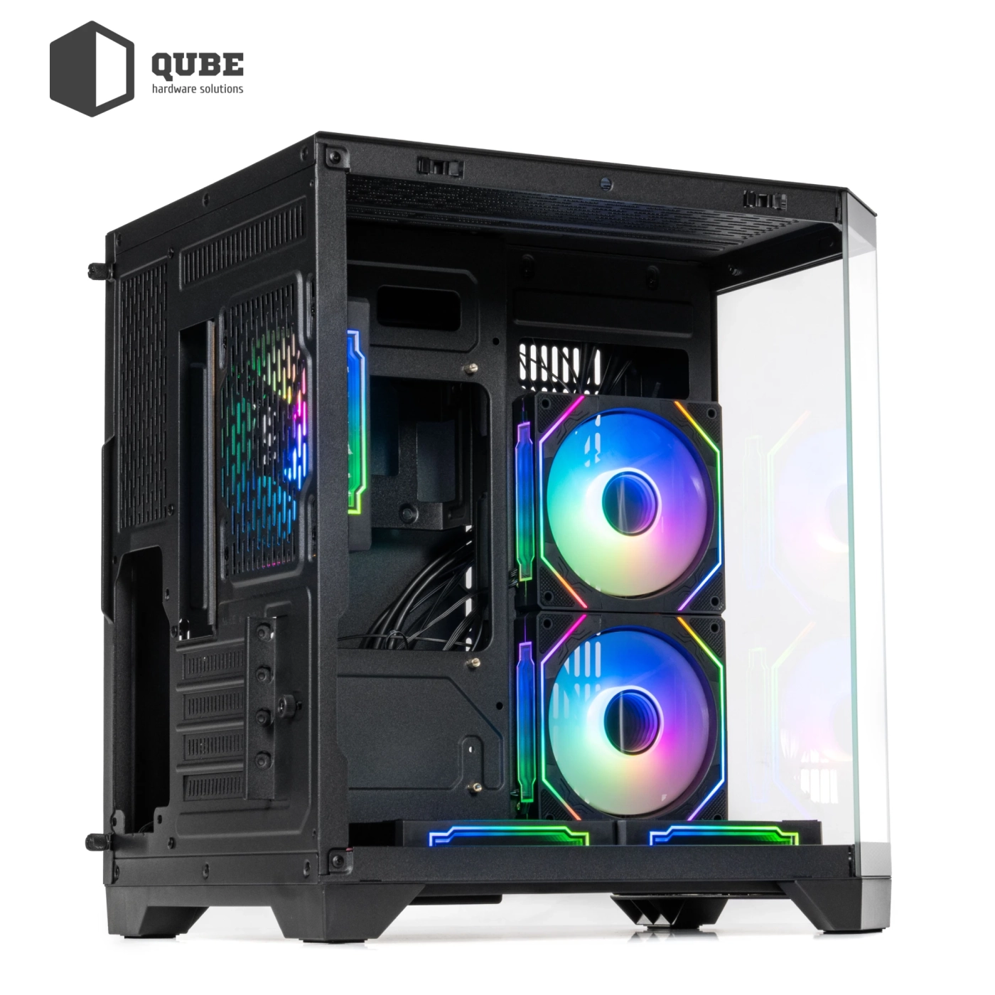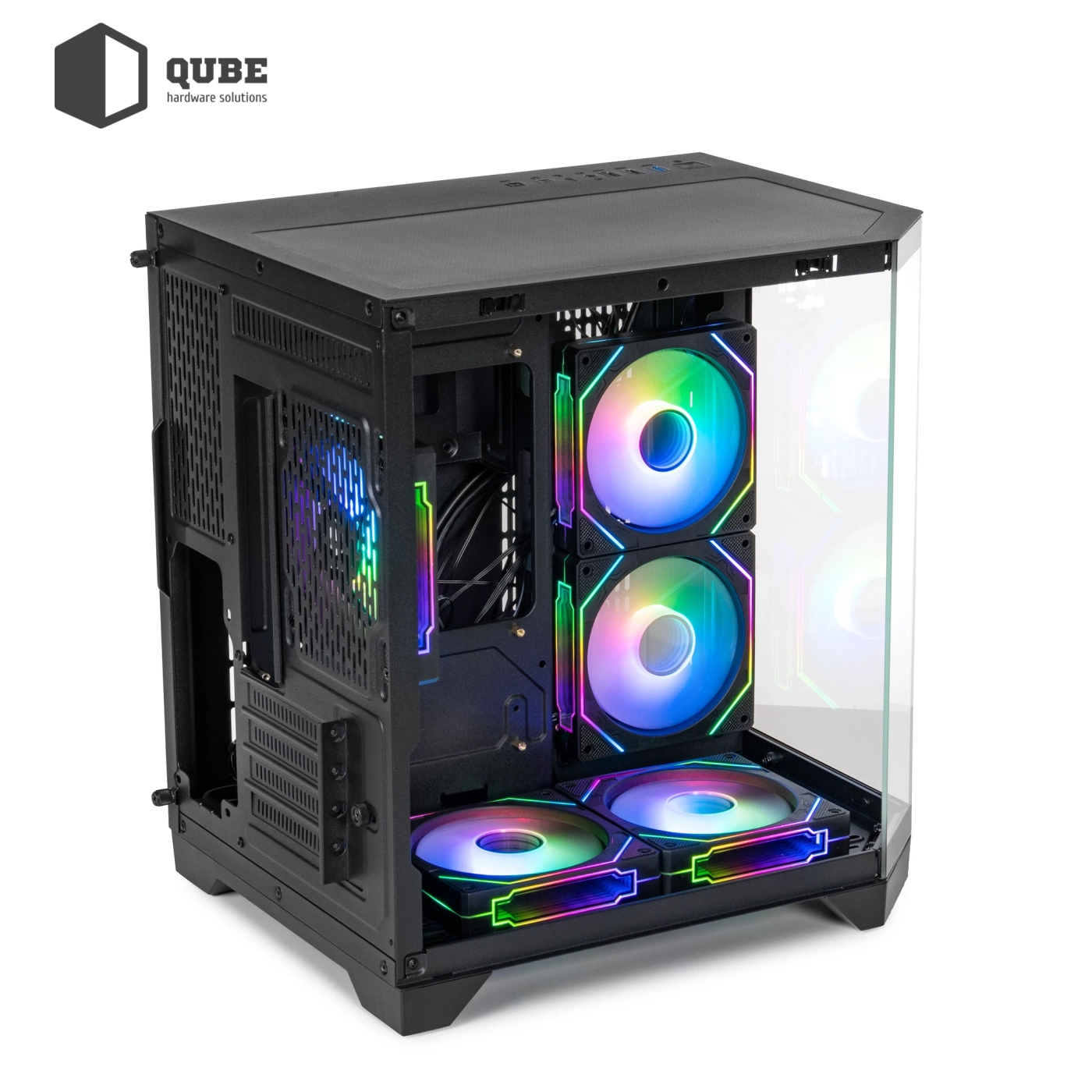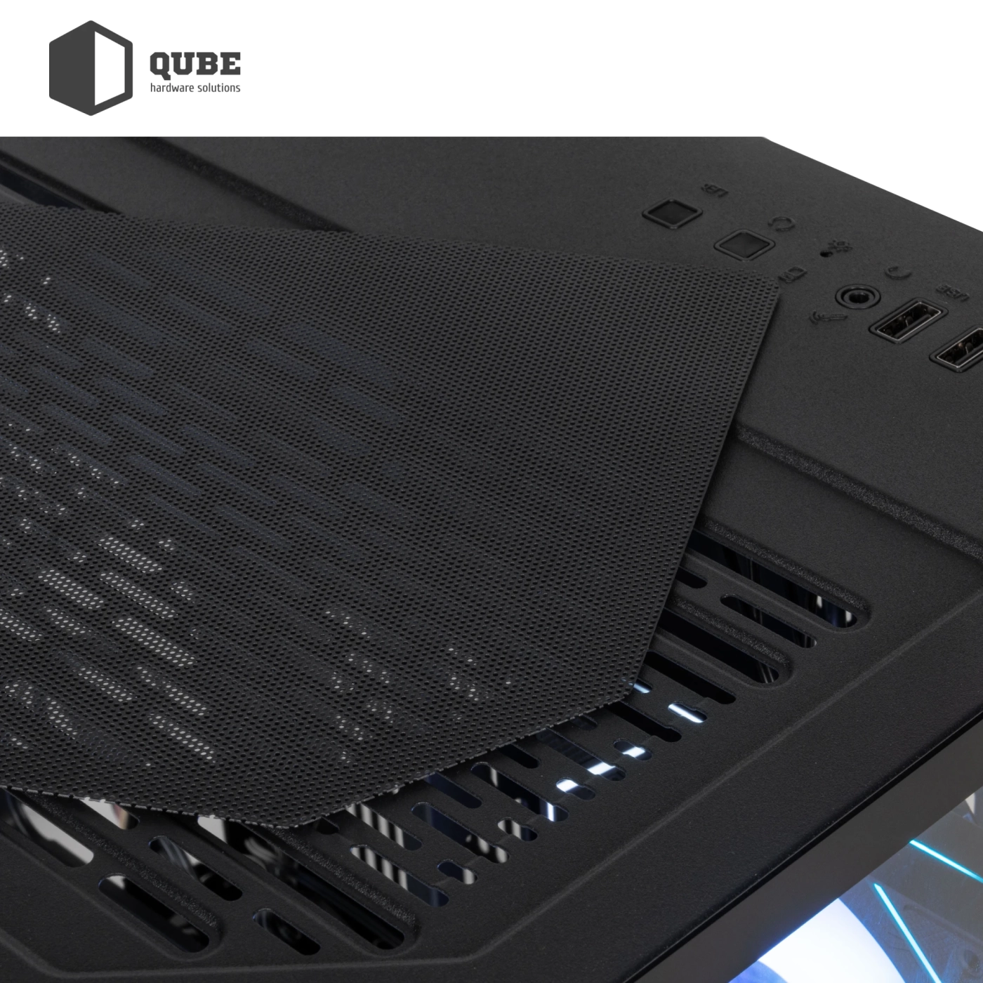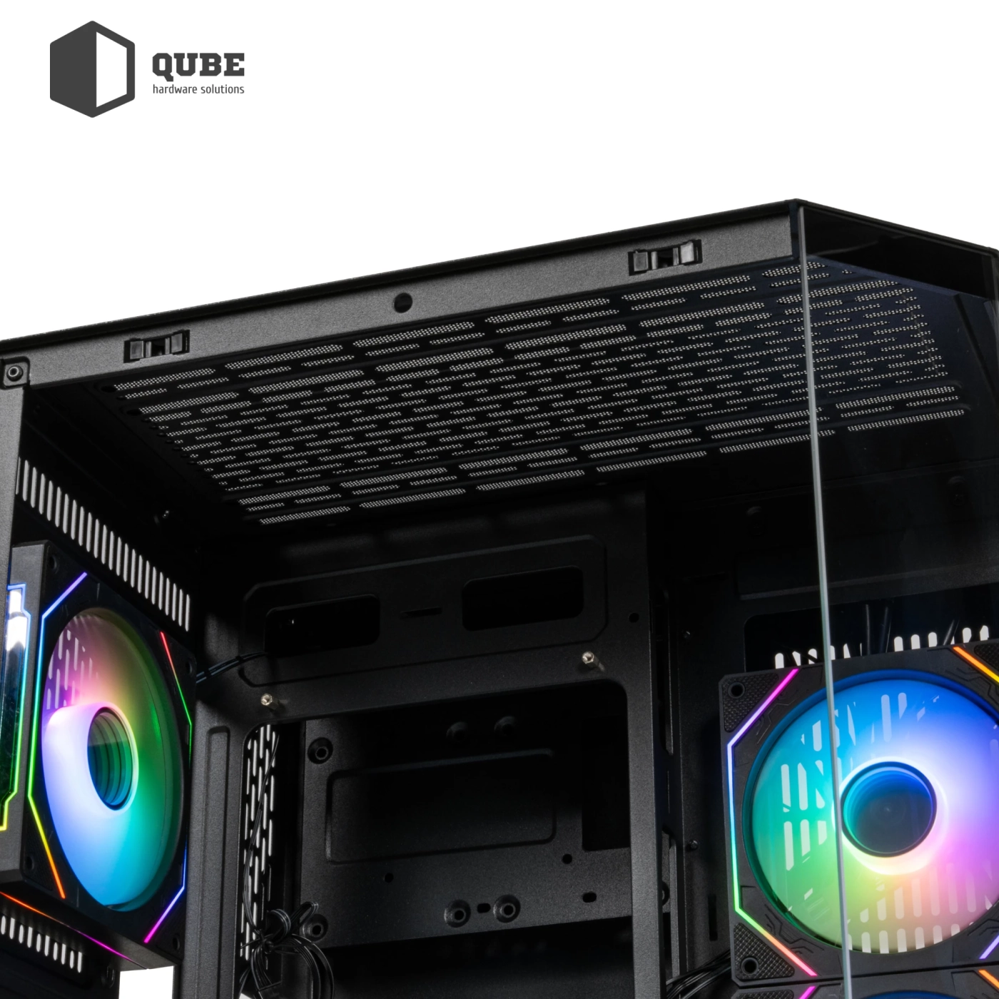 Корпус QUBE CRYSTAL ARGB Black оснащений чотирма вентиляторами, які забезпечують ефективне охолодження навіть за високих навантажень. Вентилятори встановлені так, щоб створити оптимальний повітряний потік і запобігти перегріванню компонентів. Систему охолодження можна налаштувати під ваші потреби: є можливість додати додаткові вентилятори або встановити рідинну систему охолодження. Перфорації і пилові фільтри дозволяють повітрю вільно циркулювати, зберігаючи систему в чистоті та забезпечуючи довговічність всіх компонентів. ?️?