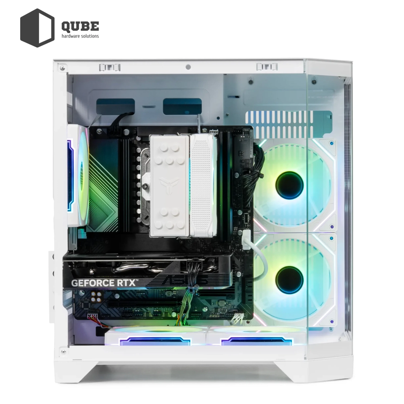Корпус QUBE CRYSTAL ARGB White оснащений чотирма вентиляторами, які забезпечують ефективне охолодження навіть за високих навантажень. Вентилятори встановлені так, щоб створити оптимальний повітряний потік і запобігти перегріванню компонентів. Систему охолодження можна налаштувати під ваші потреби: є можливість додати додаткові вентилятори або встановити рідинну систему охолодження. Перфорації і пилові фільтри дозволяють повітрю вільно циркулювати, зберігаючи систему в чистоті та забезпечуючи довговічність всіх компонентів.