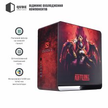 Корпус QUBE EAGLE Aluminum Black Printed Dota 2 red (QBX3M_WBNU3PD2R) / MiddleTower / microATX | mini-ITX / 1x140mm fan (Top), 1x120mm fan (Rear) / 2xUSB3.0 + 2xUSB2.0 + Audio + Mic / 1x3.5", 3x2.5"|4x2.5" / 358x188x365 / Ігровий дизайн (Dota 2) / 12міс. / QBX3M_WBNU3PD2R