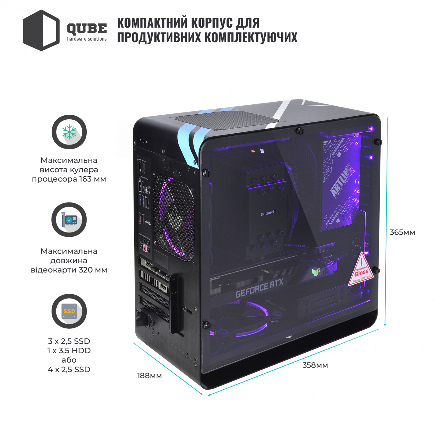 Корпус QUBE EAGLE Aluminum Black Vulkan Printed (QBX3M_WBNU3PV) / MiddleTower / microATX | mini-ITX / 1x140mm fan (Top), 1x120mm fan (Rear) / 2xUSB3.0 + 2xUSB2.0 + Audio + Mic / 1x3.5", 3x2.5"|4x2.5" / 358x188x365 / Ігровий дизайн (CS:GO Vulkan) / 12міс. / QBX3M_WBNU3PV
