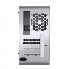 Конструктивно зовнішня частина корпусу виготовлена з суцільнометалевих сріблястих пластин товщиною 1,8 мм з алюмінієвого сплаву, які наче охоплюють внутрішню раму з усіх боків. Таке суворе, в деякій мірі – мінімалістичне виконання, відмінно підійде для користувачів, які поважають витриманий стиль і елегантність. У нижній третині передньої панелі виробник виніс кілька портів USB, в тому числі і два високошвидкісний USB 3.0, кнопку включення, а також аудіо- та мікрофонний роз'єми. На верхній грані над вентилятором розмістився невеликий протипиловий фільтр, що перешкоджає попаданню дрібнодисперсних частинок всередину комп'ютера.