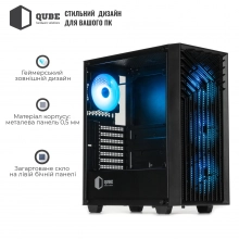 Корпус QUBE GERYON Black RGB fans (QBGERYON_FFBNU3) / MiddleTower / ATX | microATX | mini-ITX / Rear: 1x120mm RGB / Front: 3x120mm RGB / 2 x USB 3.0 + Audio + Mic / 2x3.5", 2x2.5" / 460x210x408 / Чорний / 12міс. / QBGERYON_FFBNU3