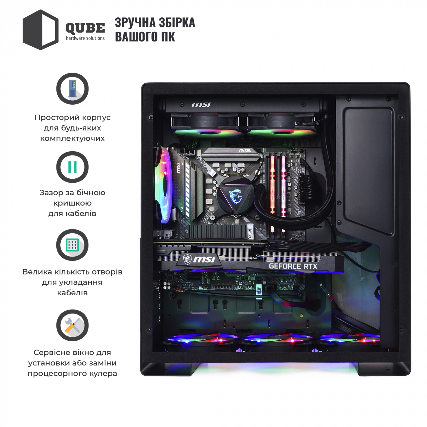 Корпус QUBE GRIFFIN Printed MSI UltimateWeapon точно припаде до смаку геймерам завдяки своїй місткості та ігровому дизайну.