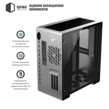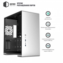 Корпус QUBE GRIFFIN Silver (QBU5S_WSNU3) / MiddleTower / ATX | microATX | mini-ITX / 2xUSB3.0 + Audio + Mic / 2x2.5"/3.5" / 2x2.5" / 418x219x440 / Сріблястий / 12міс. / QBU5S_WSNU3