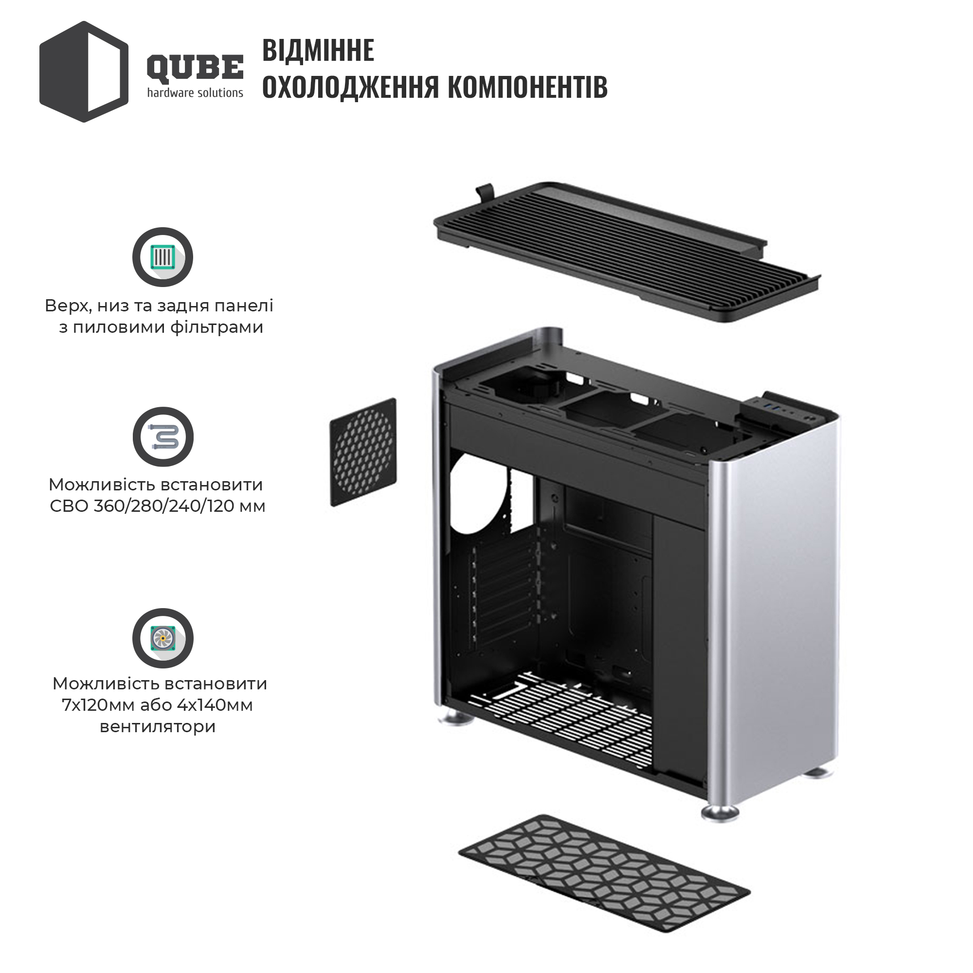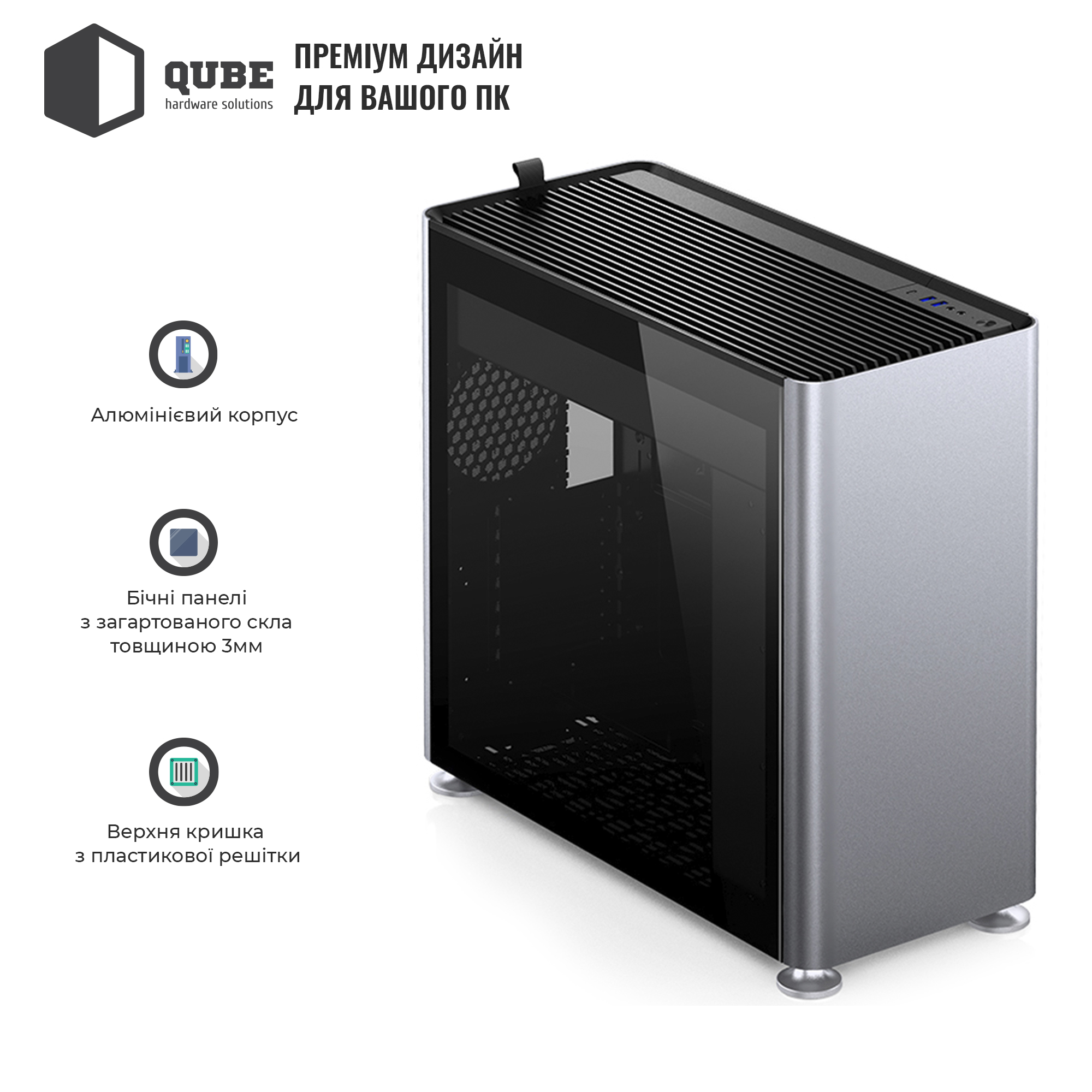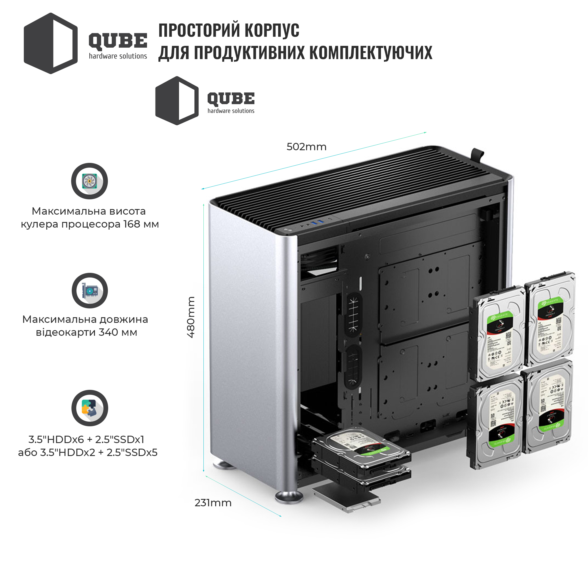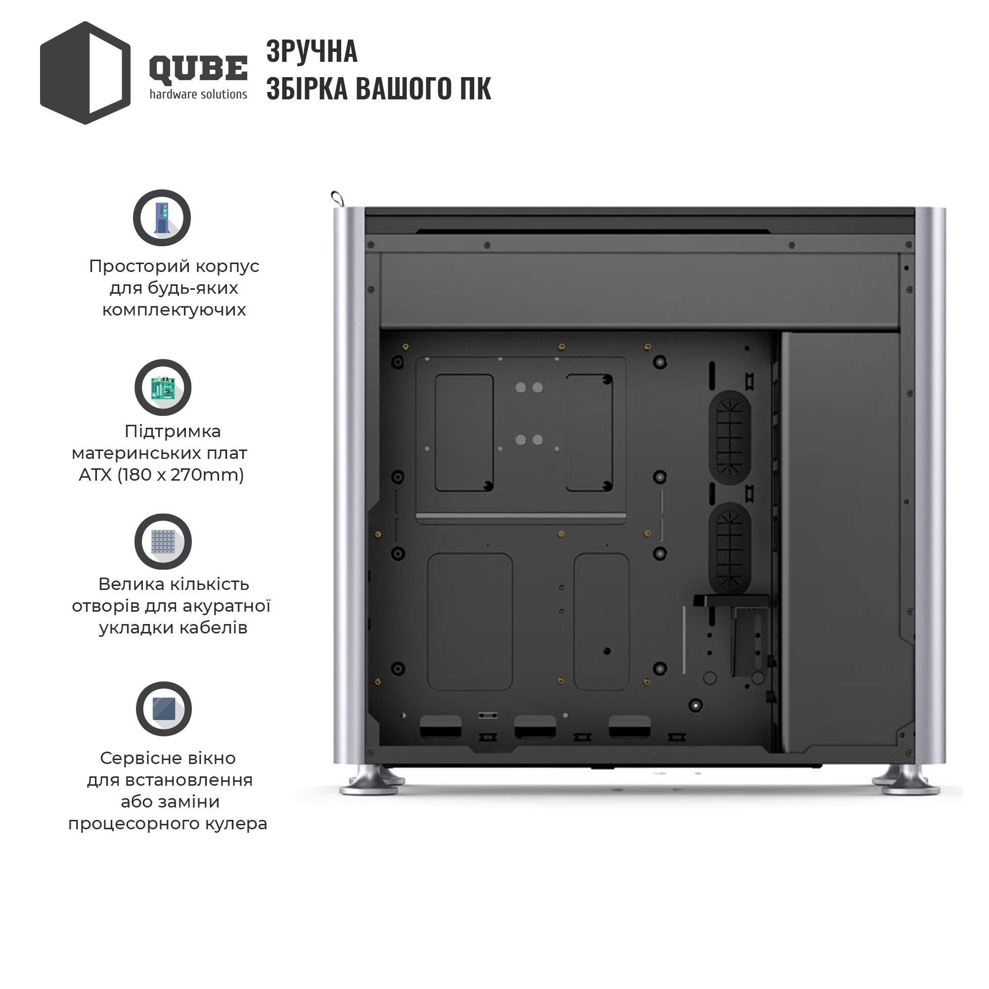 Фірмові корпуси QUBE відрізняються сучасним дизайном, продуманою конструкцією, відмінним функціоналом і дружні до будь-якого користувача, який зважився на самостійну збірку всіх необхідних комплектуючих в готовий персональний комп'ютер.
