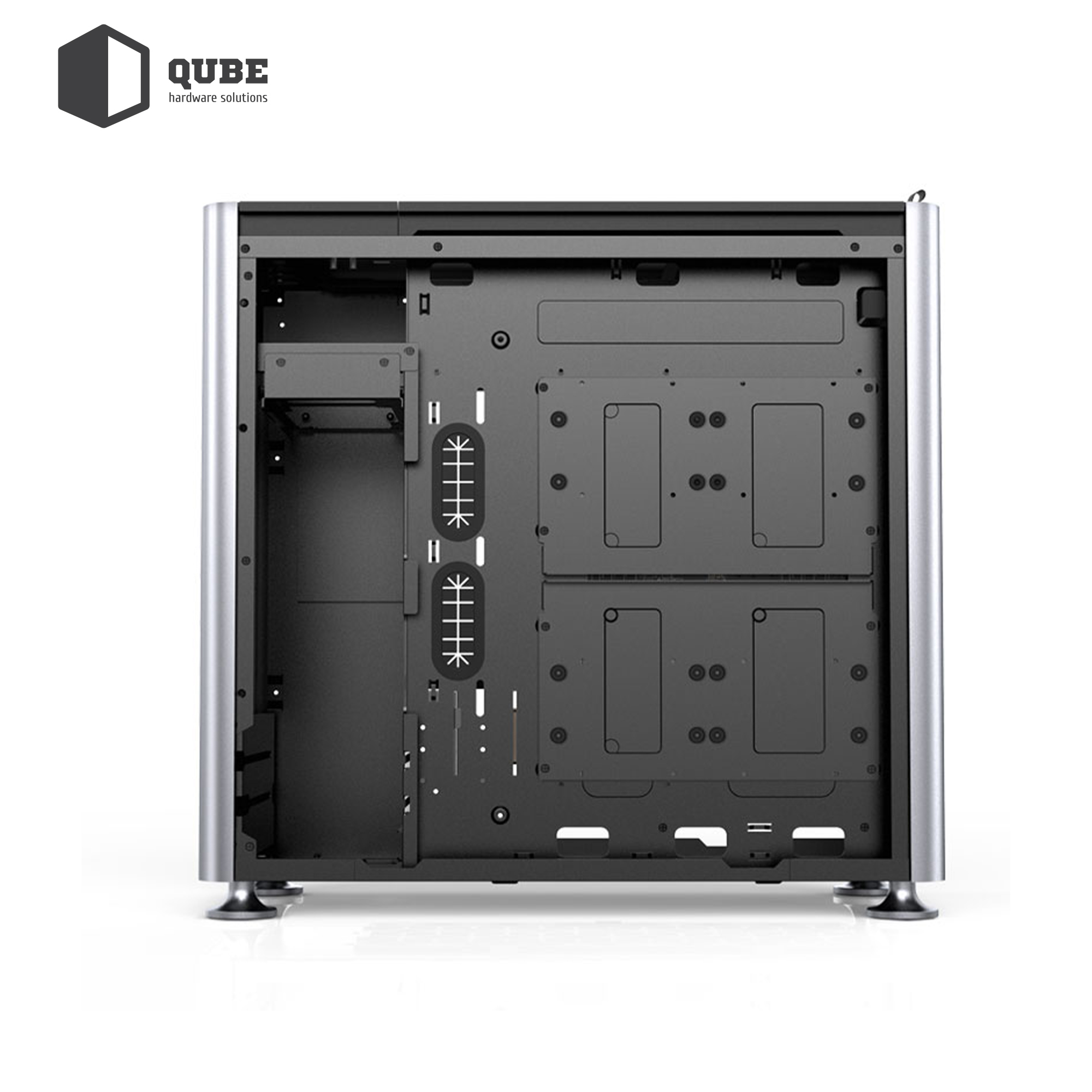 З коробки корпус QUBE i400 Silver поставляється без встановлених вентиляторів. Користувач за бажанням зможе інсталювати до 7 кулерів: знизу 3x120 мм (або 2x140 мм); зверху 3x120 мм (або 2x140 мм); ззаду 1x120 мм. Завдяки продуманій внутрішній конструкції повітряний потік від вентиляторів сприятиме оптимальному охолодженню встановлених компонентів.