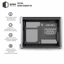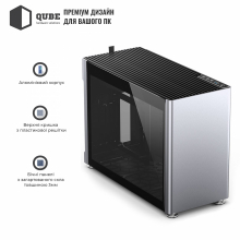 Корпус QUBE i100 Pro Tempered glass Silver (i100-G_Silver) / MiniTower / ITX | DTX / 1хUSB3.0 + 1хType-C + Audio / 1x3.5", 2x2.5" / 435x194x307 / Silver / 12міс. / i100-G_Silver
