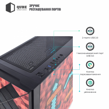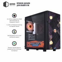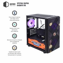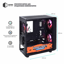 Корпус QUBE IMPACT Printed Minecraft-Black (IMPACT_FMNU3PMB) / MiniTower / microATX | mini-ITX / Front: 2x140mm RGB / Rear: 1x120mm RGB / 1хUSB3.0 + 2хUSB2.0 + Audio + Mic / 2x2.5" / 2x3.5" / 405x210x403 / Ігровий дизайн (Minecraft) / 12міс. / IMPACT_FMNU3PMB