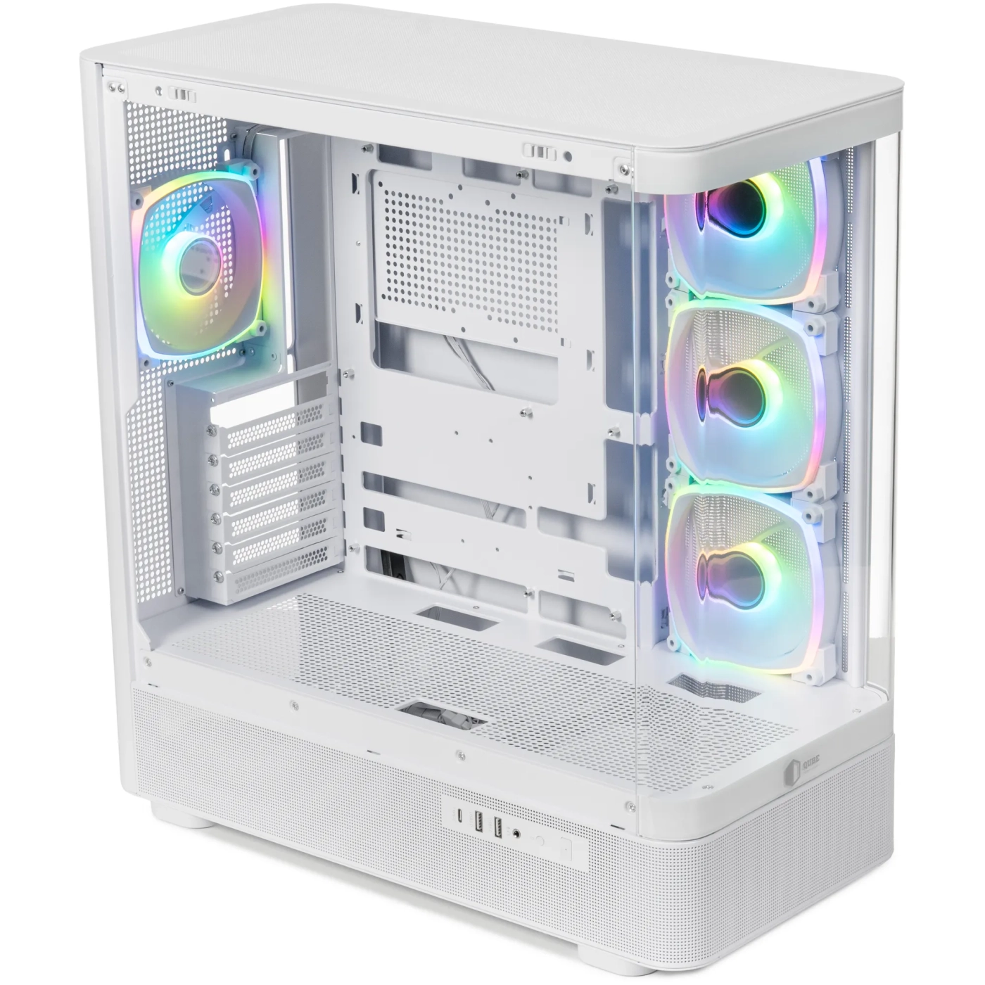 Особливістю корпусу є його здатність підтримувати до семи вентиляторів, що гарантує оптимальне охолодження навіть в умовах інтенсивної роботи. Можливість встановлення водяного охолодження з радіаторами до 420 мм відкриває додаткові можливості для тих, хто хоче максимізувати продуктивність своєї системи. Бічна стінка із загартованого скла не тільки захищає компоненти, а й дає змогу милуватися внутрішнім оформленням вашої збірки. Швидке кліпсове кріплення фронтальної панелі спрощує доступ до компонентів, а знімні пилові фільтри полегшують догляд за системою.