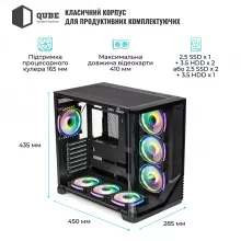 QUBE Mirage Black — вибір ентузіастів, яким потрібен ідеальний баланс між естетикою, функціональністю та готовністю до екстремальних навантажень. Запас за розміром для компонентів, потужна штатна вентиляція та преміальний зовнішній вигляд роблять його чудовою основою як для ігрової станції, так і для робочої системи, яка потребує безкомпромісної продуктивності.
