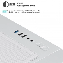 Корпус QUBE Mirage White (MIRAGE_GWNU3) / MiddleTower / ATX | microATX | mini-ITX / Bottom: 3x120mm / Rear: 1x120mm / Side: 3x120mm / 2 x USB 2.0 + 1 x USB 3.0 + Audio + Mic / 1x2.5" / 2x3.5" / 450х285х435 (ДxШxВ) / Білий / 12міс. / MIRAGE_GWNU3