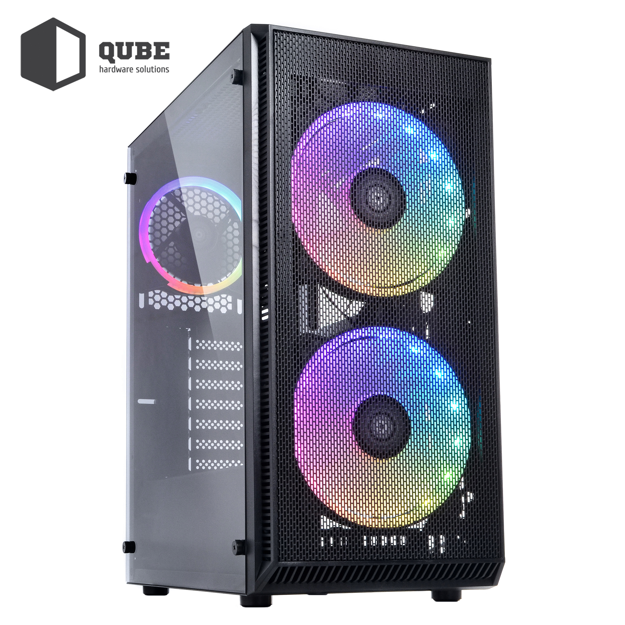 Корпус QUBE NEPTUNE (QB07N_FCNU3) / MiddleTower / ATX | microATX | mini-ITX / 2x160mm ARGB LED fans (Front) + 1x120mm ARGB LED fan (Rear) / 1хUSB3.0 + 2хUSB2.0 + Audio + Mic / 2x3.5", 2x2.5" / 370x210x480 / Black / 12міс. / QB07N_FCNU3