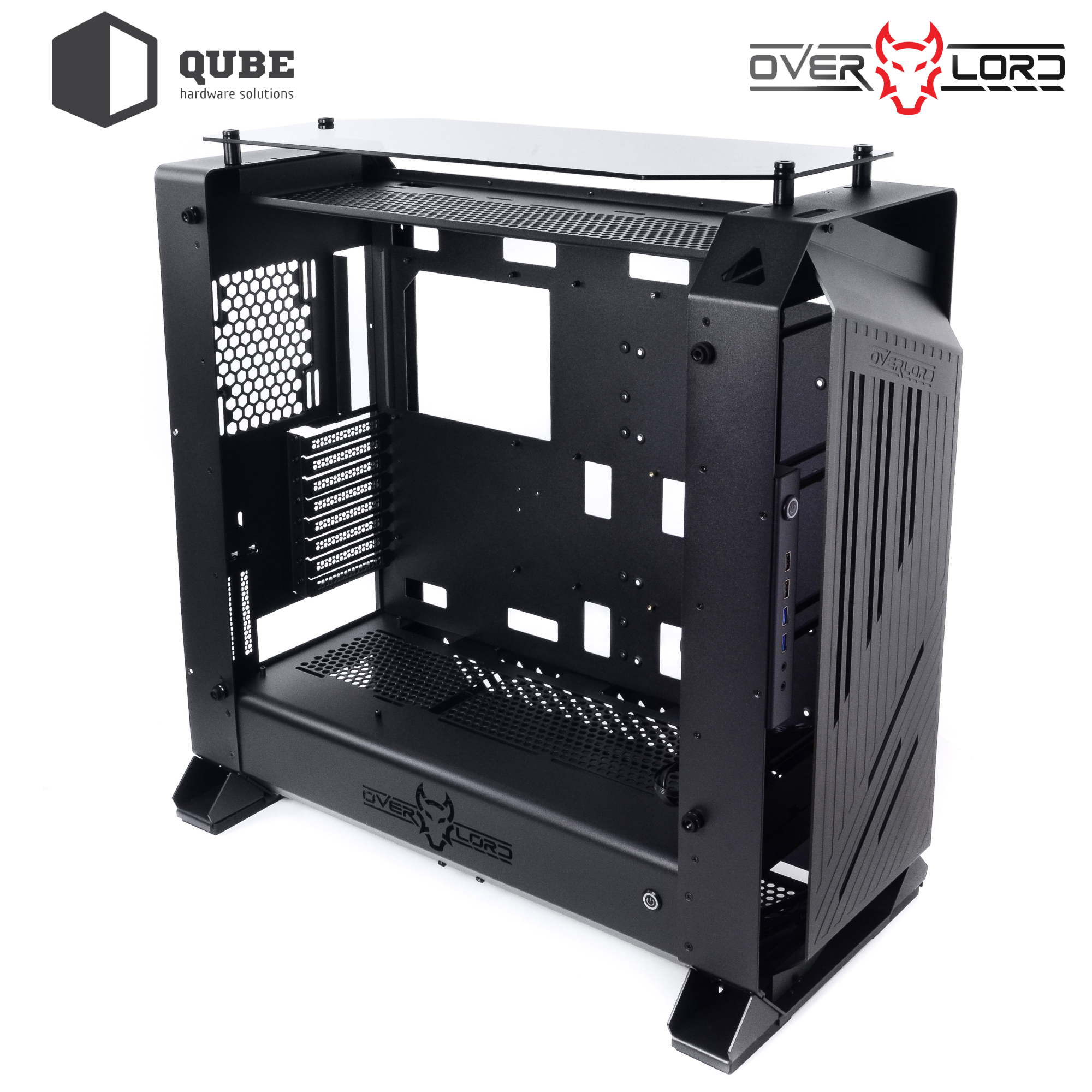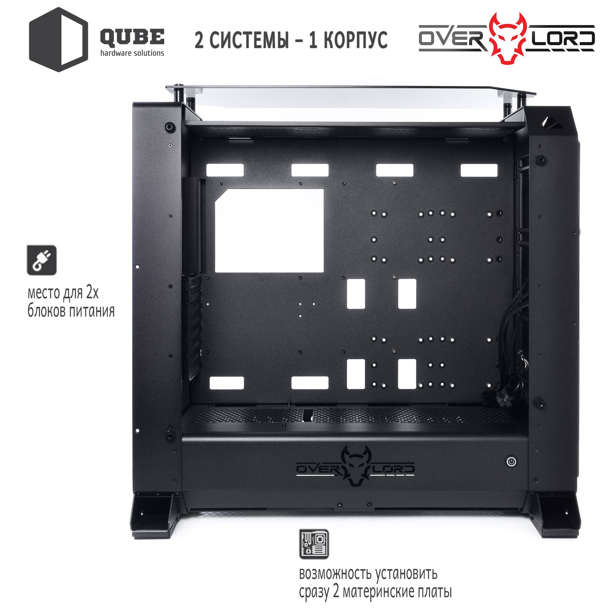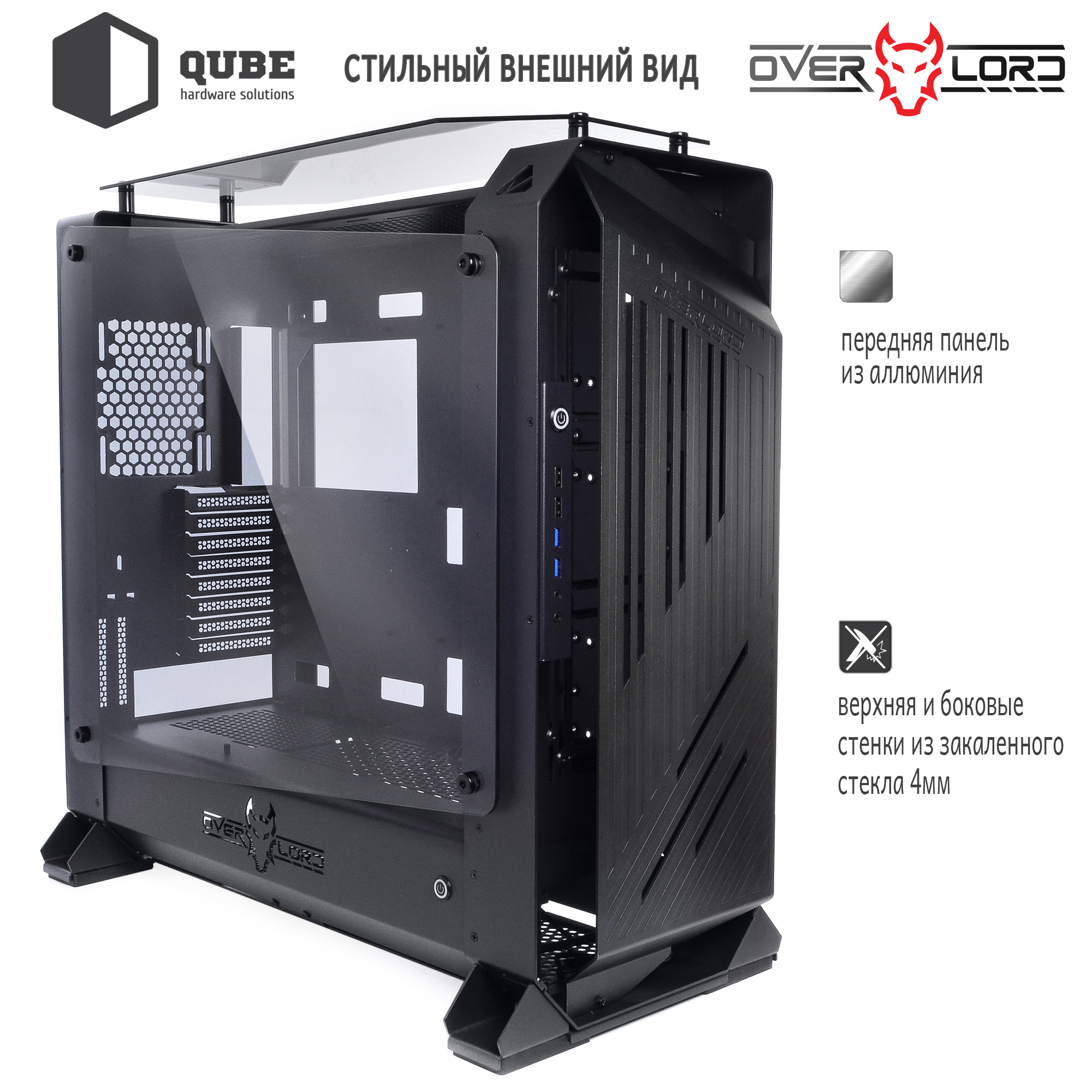 Модель QUBE OVERLORD 801 является полноформатным корпусом, который удовлетворит требования даже самого притязательного пользователя. Все острые края металла аккуратно зашлифованы или подогнуты, тем самым исключается любая возможность пораниться при сборке, как того и требует продукт премиум класса. Фишкой корпуса выступают верхняя и боковые поверхности, выполненные из темного каленого стекла.