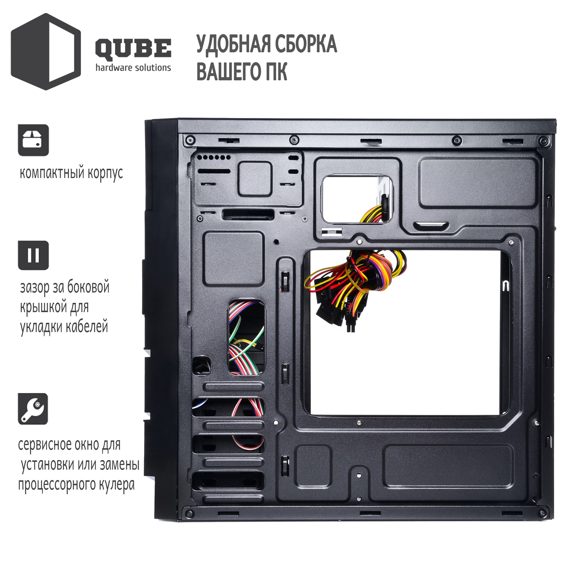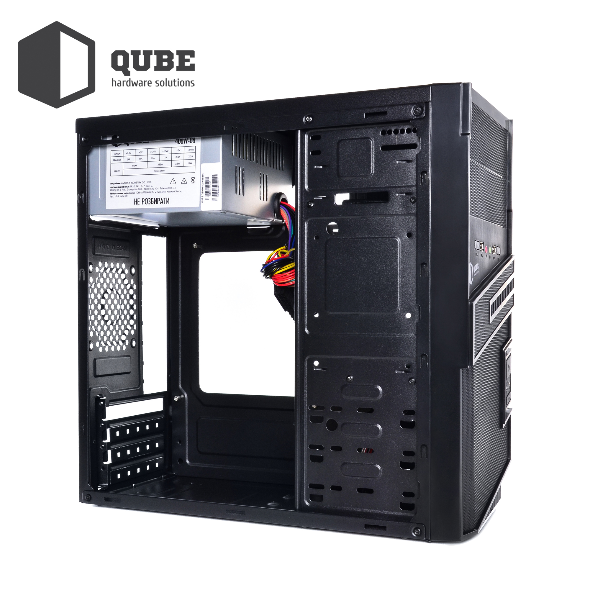 Модель QUBE QB06M – это недорогой корпус формата MiniTower, который подойдет для нетребовательного пользователя. Все острые края листового металла толщиной 0,4 мм аккуратно зашлифованы или подогнуты, тем самым исключается любая возможность пораниться при сборке.