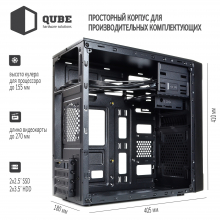 Фирменные корпуса QUBE отличаются современным дизайном, продуманной конструкцией, отличным функционалом и дружны к любому пользователю, который решился на самостоятельную сборку всех необходимых комплектующих в готовый персональный компьютер.