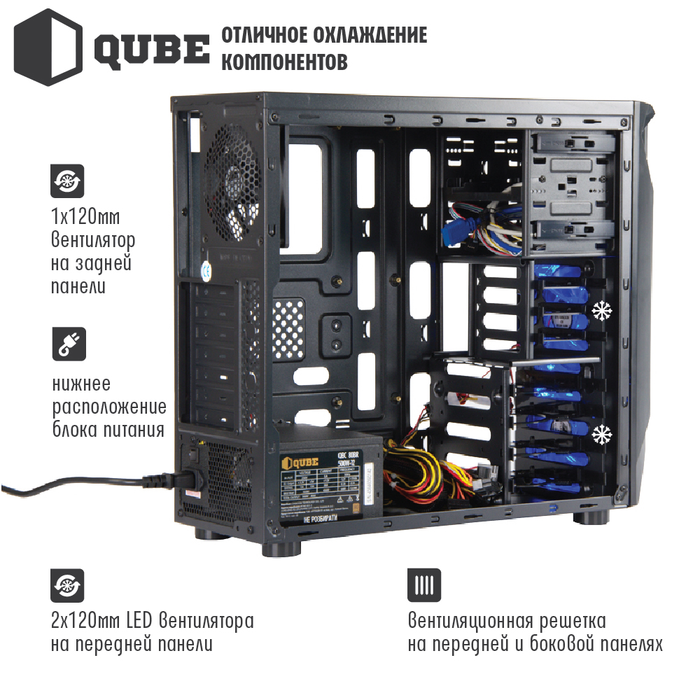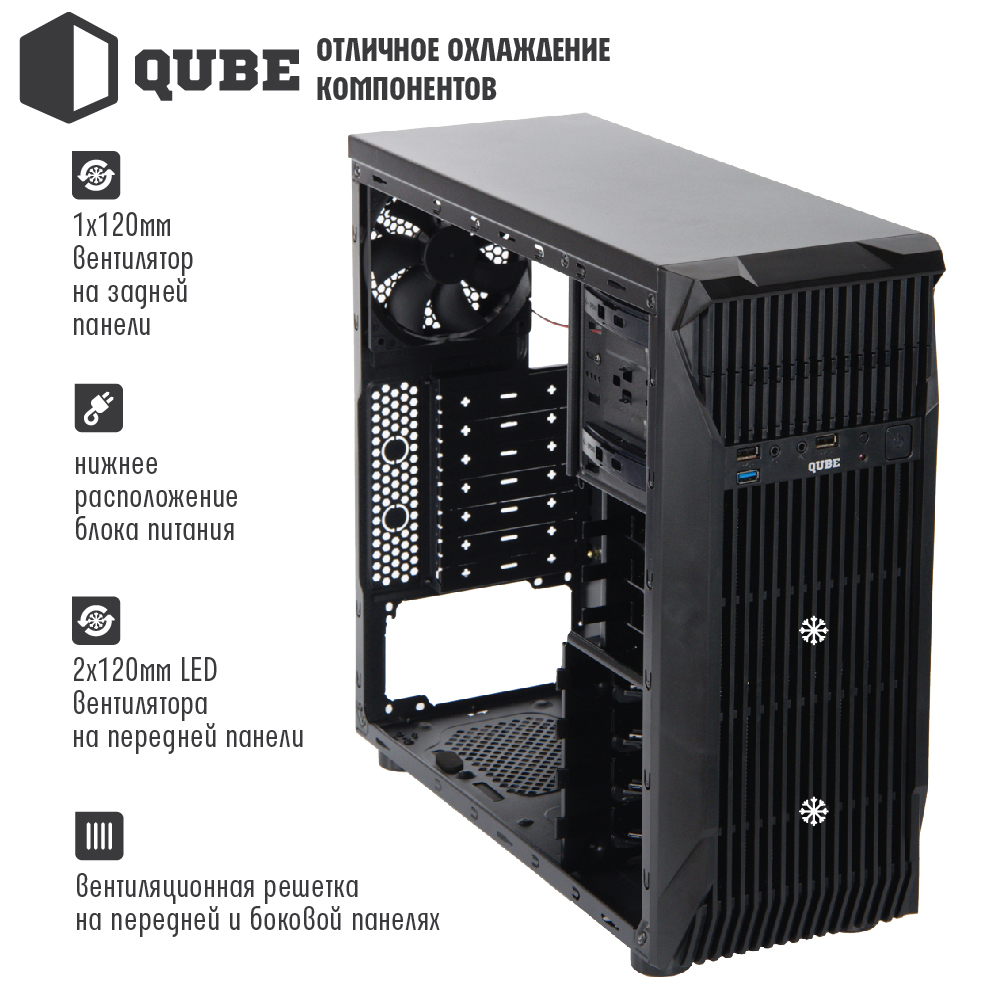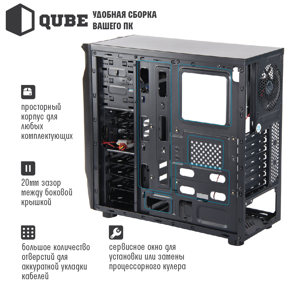 Фирменные корпуса QUBE отличаются современным дизайном, продуманной конструкцией, отличным функционалом и дружны к любому пользователю, который решился на самостоятельную сборку всех необходимых комплектующих в готовый персональный компьютер.