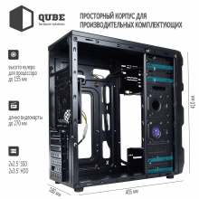 Наличие в корпусе QUBE QB932A нескольких предустановленных вентиляторов обеспечит отличную продуваемость во всех, даже технически ограниченных к доступу, местах.