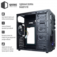 Наличие в корпусе QUBE QB932A нескольких предустановленных вентиляторов обеспечит отличную продуваемость во всех, даже технически ограниченных к доступу, местах.