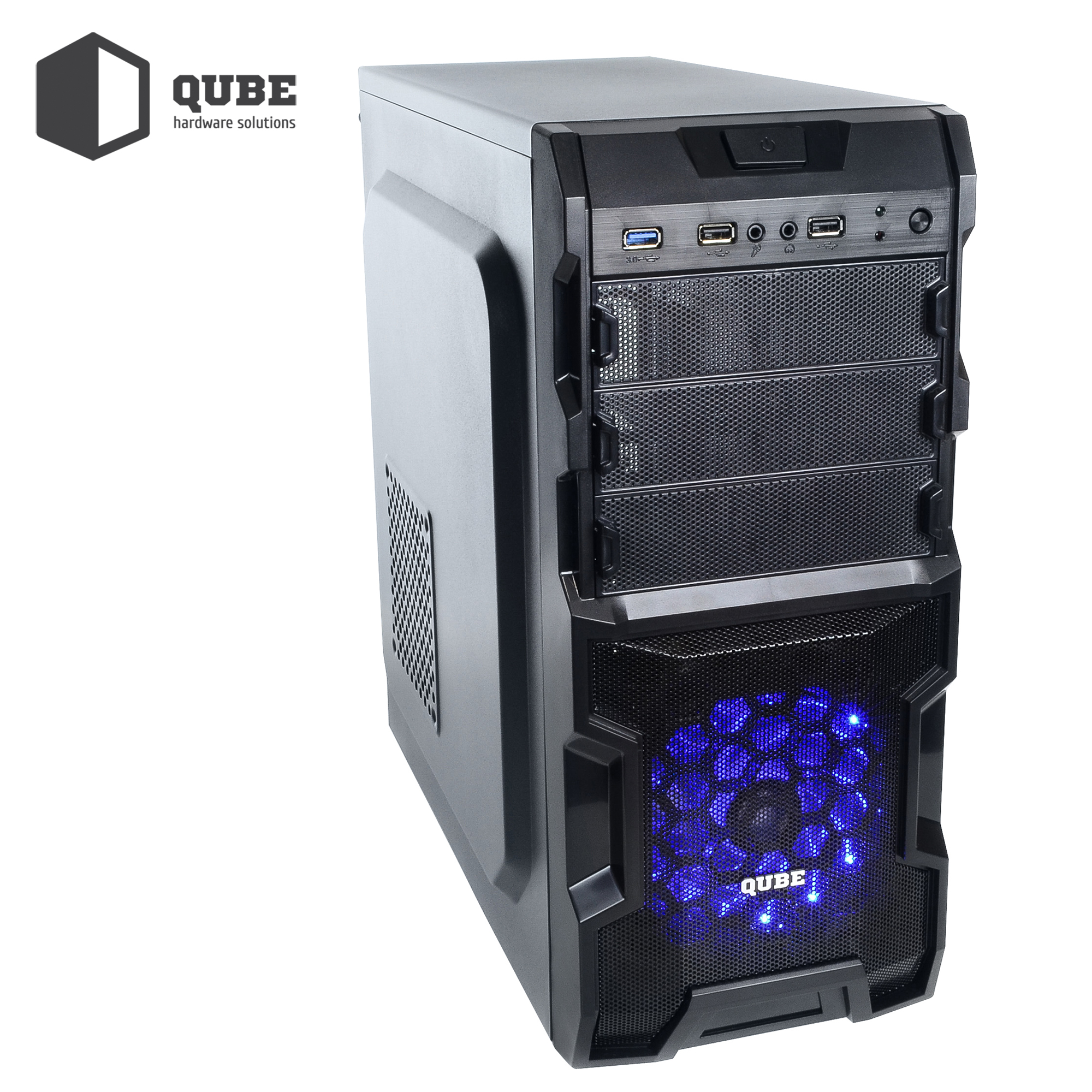 Корпус QUBE QB932A (QB932A_MBNU3) / MiddleTower / ATX | microATX | mini-ITX / 1x120mm Blue LED fan (Front) + 1x120mm Black fan (Rear) / 1хUSB3.0 + 2хUSB2.0 + Audio + Mic / 3x5.25", 3x3.5", 2x2.5" / 405x180x410 / Black / 12міс. / QB932A_MBNU3