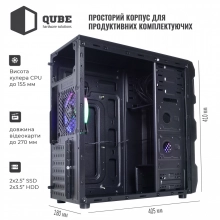 Фірмові корпуси QUBE відрізняються сучасним дизайном, продуманою конструкцією, відмінним функціоналом та дружні до будь-якого користувача, який зважився на самостійну збірку всіх необхідних комплектуючих у готовий персональний комп'ютер.