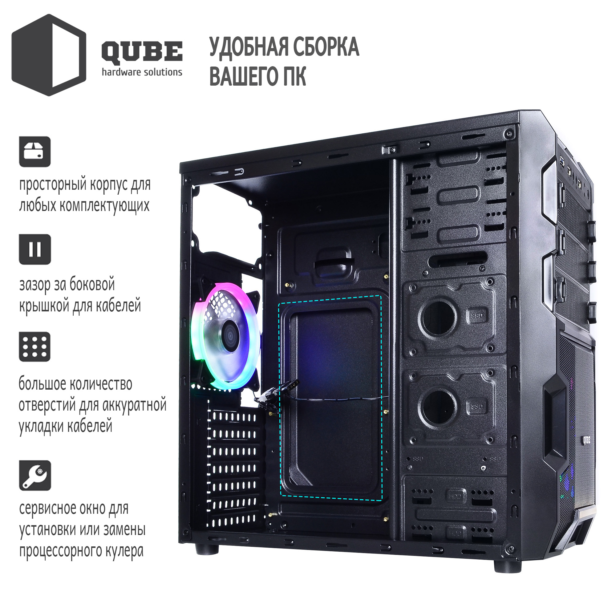 Наличие в корпусе QUBE QB932A нескольких предустановленных вентиляторов с цветной подсветкой обеспечит отличную продуваемость во всех, даже технически ограниченных к доступу, местах.