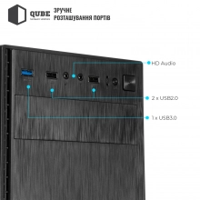 Корпус QUBE QBG10M Black (QBG10M_MNNU3) / MiddleTower / ATX | microATX | ITX / 1xUSB3.0 + 2xUSB2.0 + Audio + Mic / 2x3.5" / 3x2.5" / 410x180x360 / Чорний / 12міс. / QBG10M_MNNU3