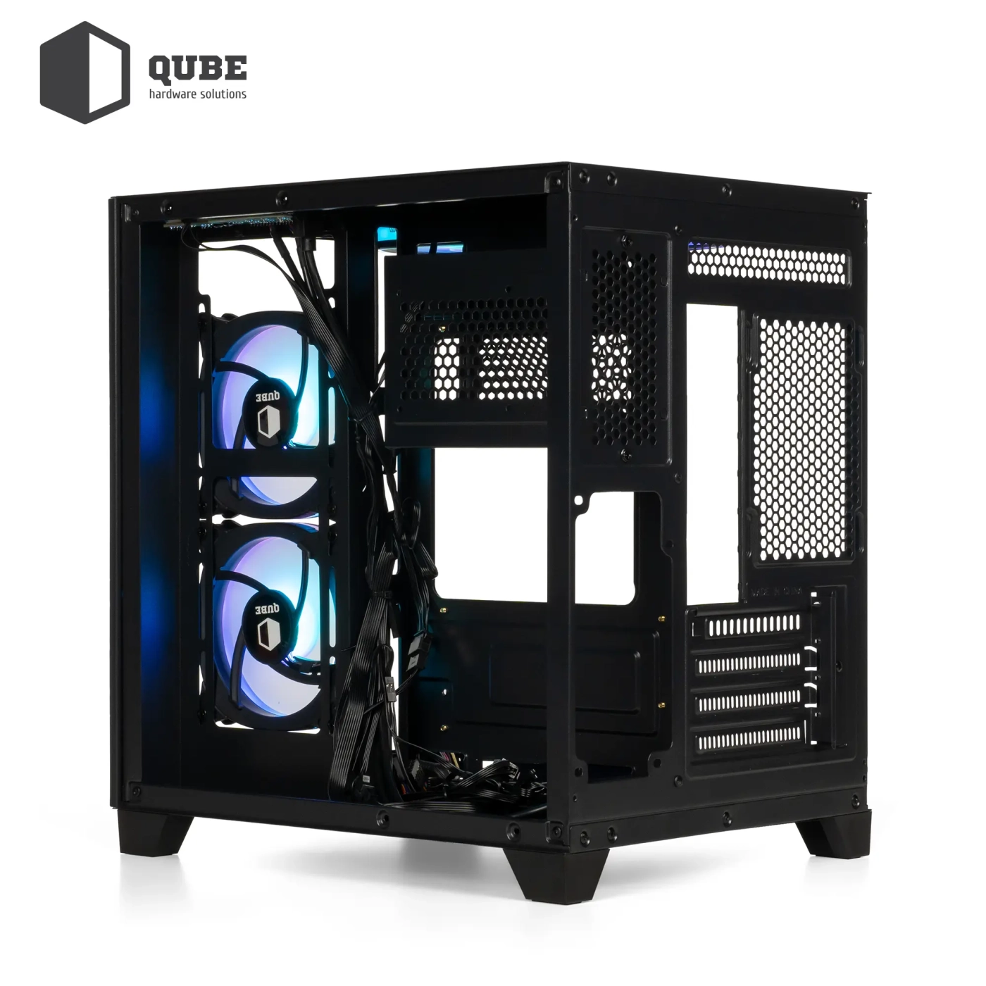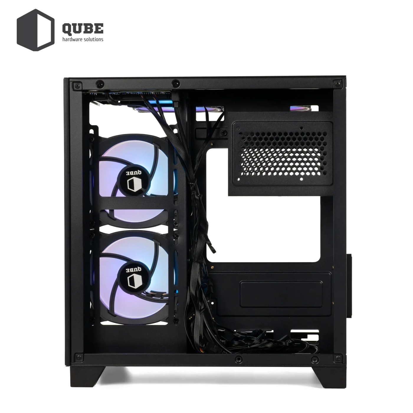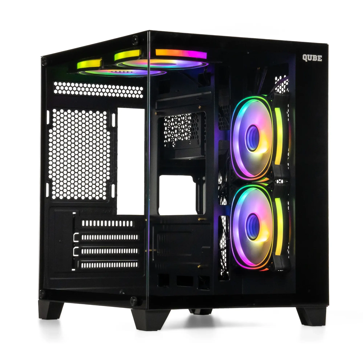 Всередині корпусу QUBE REEF ARGB White (REEF_GMNU3) пропонує чудову організацію компонентів. Він підтримує материнські плати формату mATX та mini-ITX, що робить його ідеальним вибором для створення компактних, але потужних систем. Незважаючи на свої відносно невеликі розміри (375x270x340 мм), в корпусі достатньо місця для встановлення всіх необхідних компонентів, включаючи два 3.5-дюймові та один 2.5-дюймовий слоти для накопичувачів.