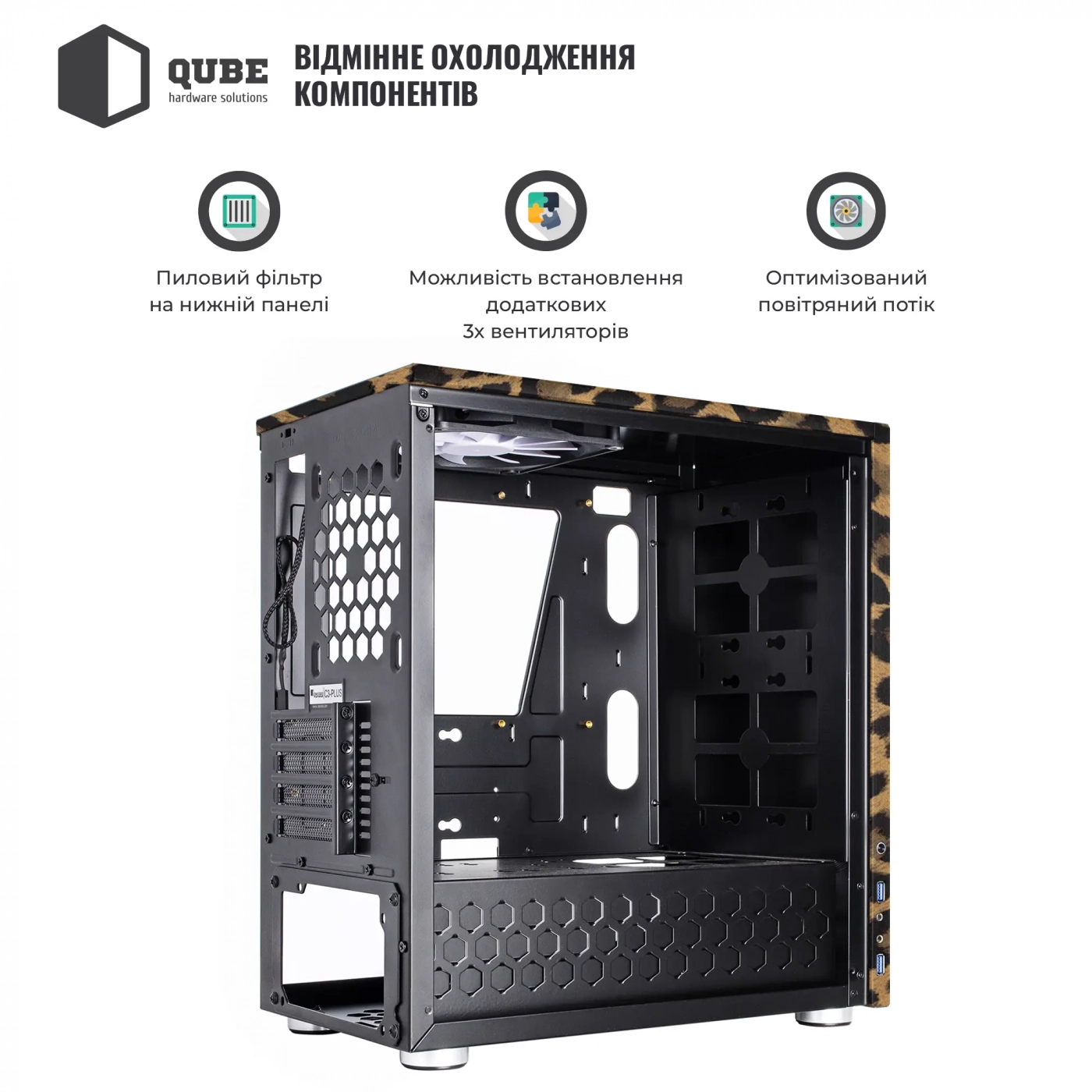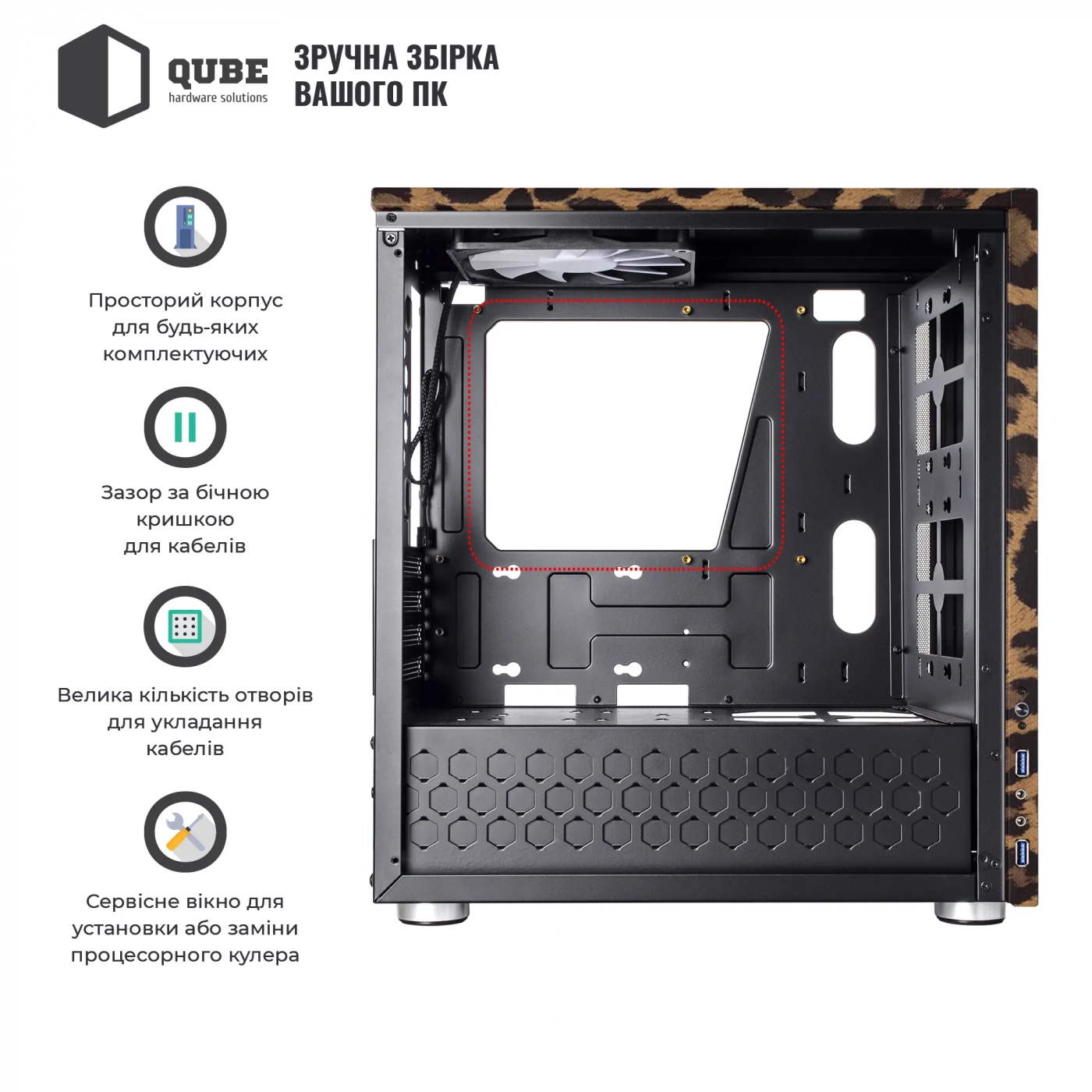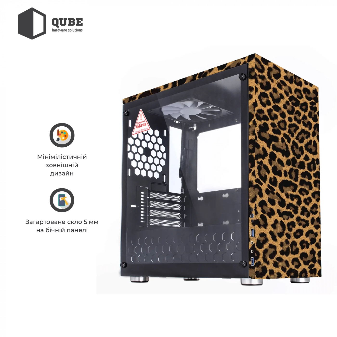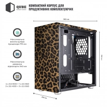 Корпус QUBE STYLE Leopard (QB_LPv01) / MiddleTower / microATX | mini-ITX / Top: 1x140mm / 2xUSB3.0 + Audio + Mic / 4x3,5", 1x2,5"/3x3,5", 3x2,5" / 360x218x398 / Принт "Леопард" / 12міс. / QB_LPv01