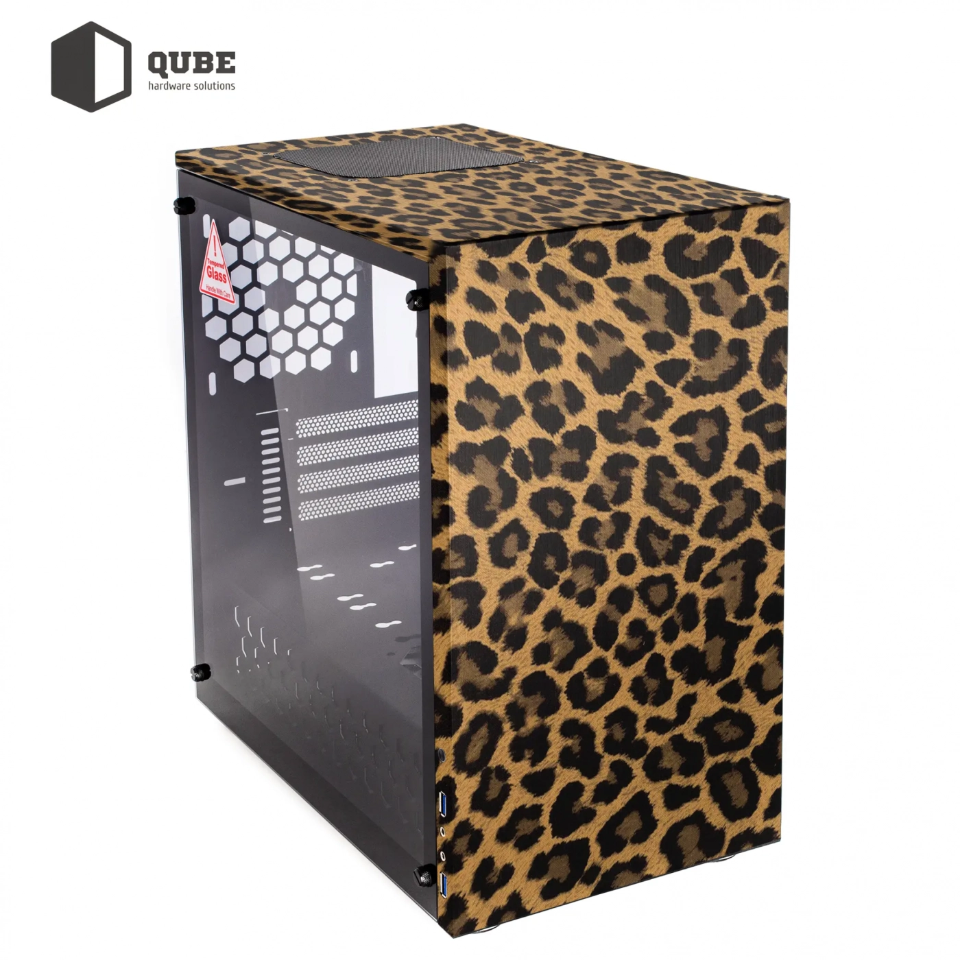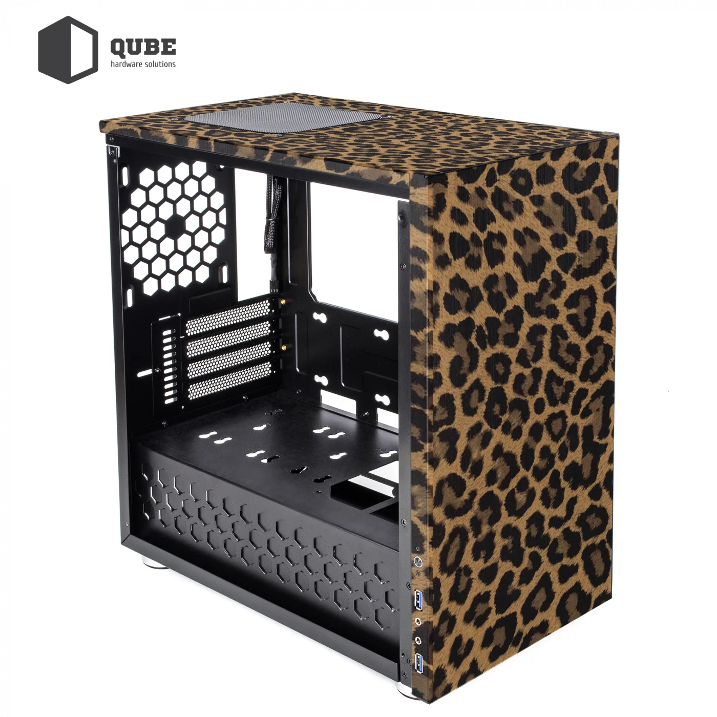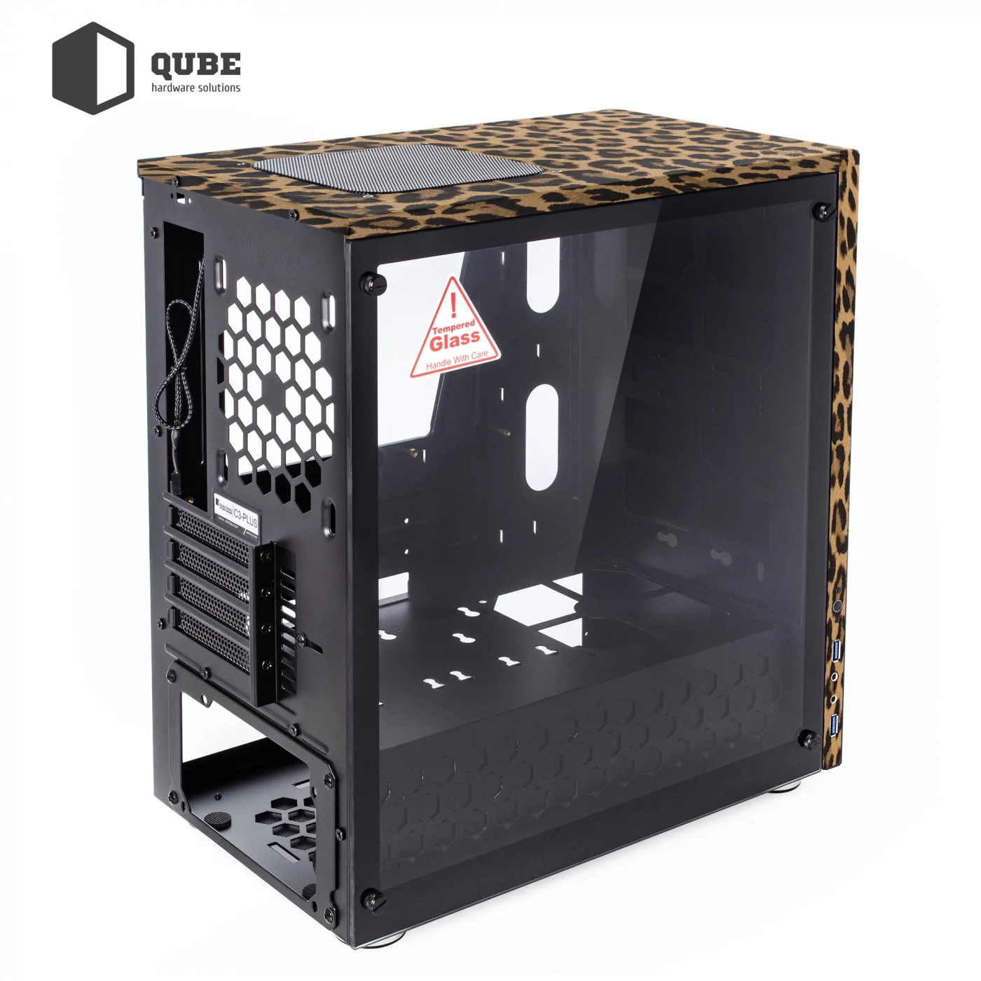 Модель QUBE STYLE Leopard – кастомна модель, дизайн якої навіяний тваринними "леопардовими" нотками нестримного хижака. Це просторий корпус формату MiddleTower, який задовольнить вимоги переважної більшості покупців. Всі гострі краї товстого листового металу товщиною 0,8 мм акуратно зашліфовані або підігнуті, що виключає можливість поранитися при складанні. Бічна панель виконана з тонованого загартованого скла.