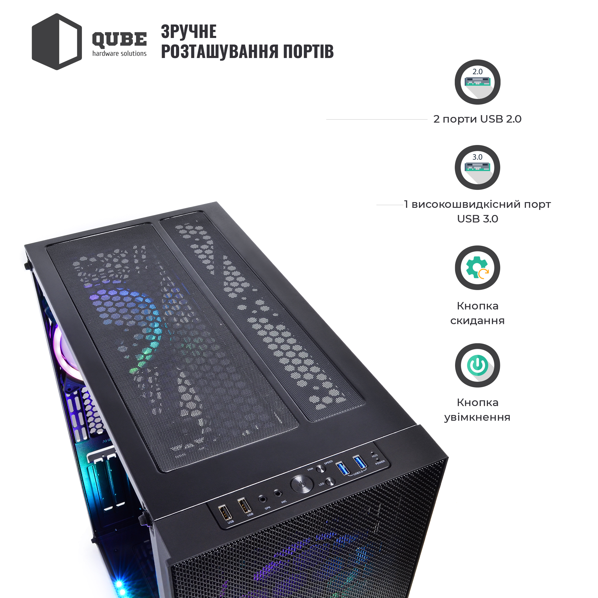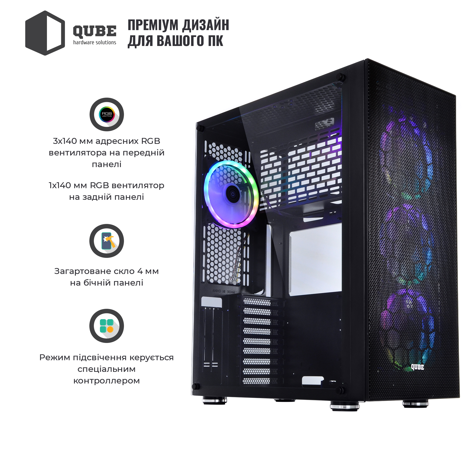 QUBE TITAN ARGB має строгий, витриманий стиль, який припаде до смаку справжнім цінителям збірок високого рівня.