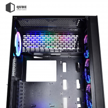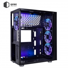 QUBE TITAN ARGB – це просторий корпус формату MiddleTower з яскравими RGB вентиляторами, котрий задовольнить вимоги переважної більшості користувачів. Виготовлений корпус з міцного металу товщиною 0,7 мм, гострі краї якого, акуратно зашліфовані і підігнуті всередину для безпечної збірки комп'ютера. Бічна панель виготовлена з міцного загартованого скла товщиною 4 мм, через яке добре буде видно «начинку» ПК, а також встановлені вентилятори з підсвічуванням. Передня металева панель має незліченну кількість дрібних отворів, за рахунок яких забезпечується хороший повітрообмін всередині корпусу. Для зручності при збірці комп'ютера мрії і при його експлуатації, розробники корпусу продумали отвори для укладання кабелів, велике сервісне вікно для установки або заміни процесорного кулера, окремий відсік для блоку живлення.