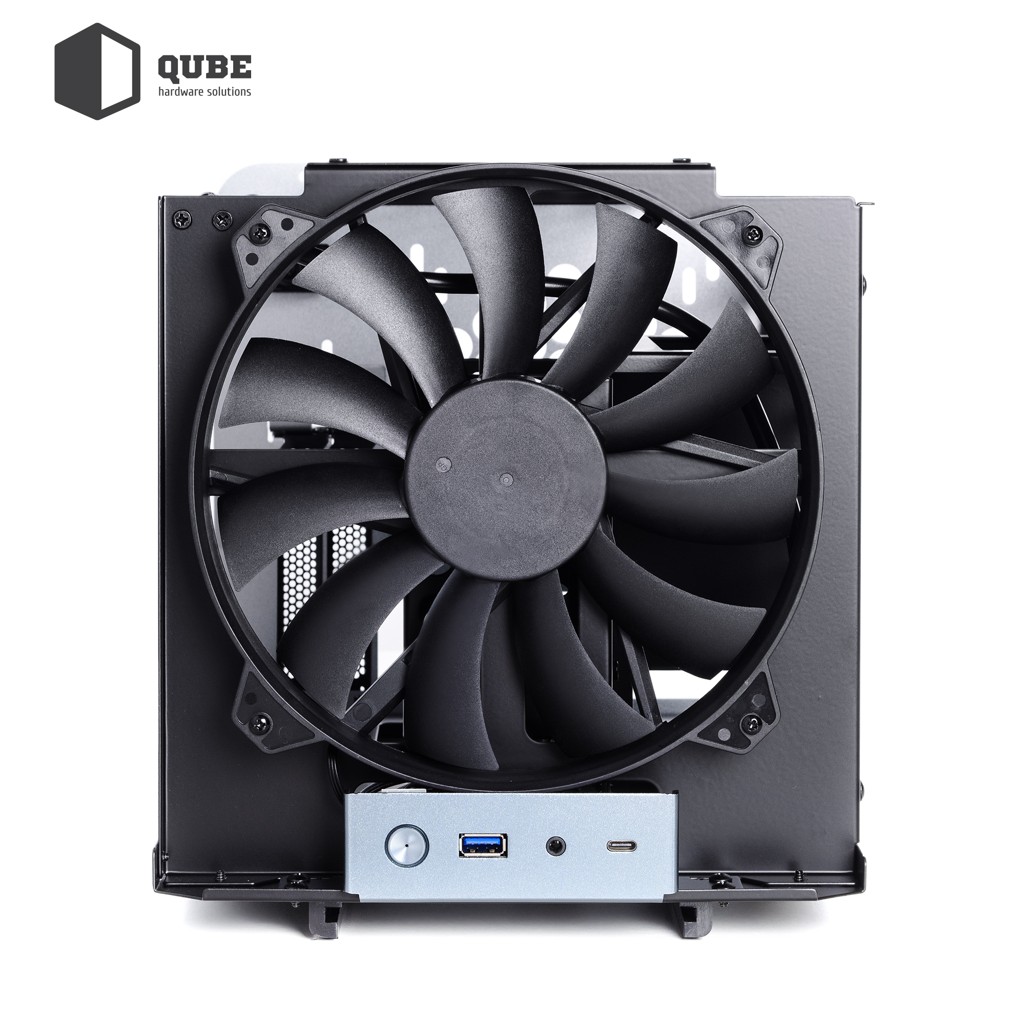 З коробки корпус QUBE V8 Ghost поставляється з одним фронтальним 200 мм вентилятором. Користувач, за бажанням, зможе додатково інсталювати ще 3 кулери: зверху 2x120 мм та ззаду 1x140/120 мм. Завдяки продуманій внутрішній конструкції повітряний потік від працюючих вентиляторів сприятиме оптимальному охолодженню встановлених компонентів.
