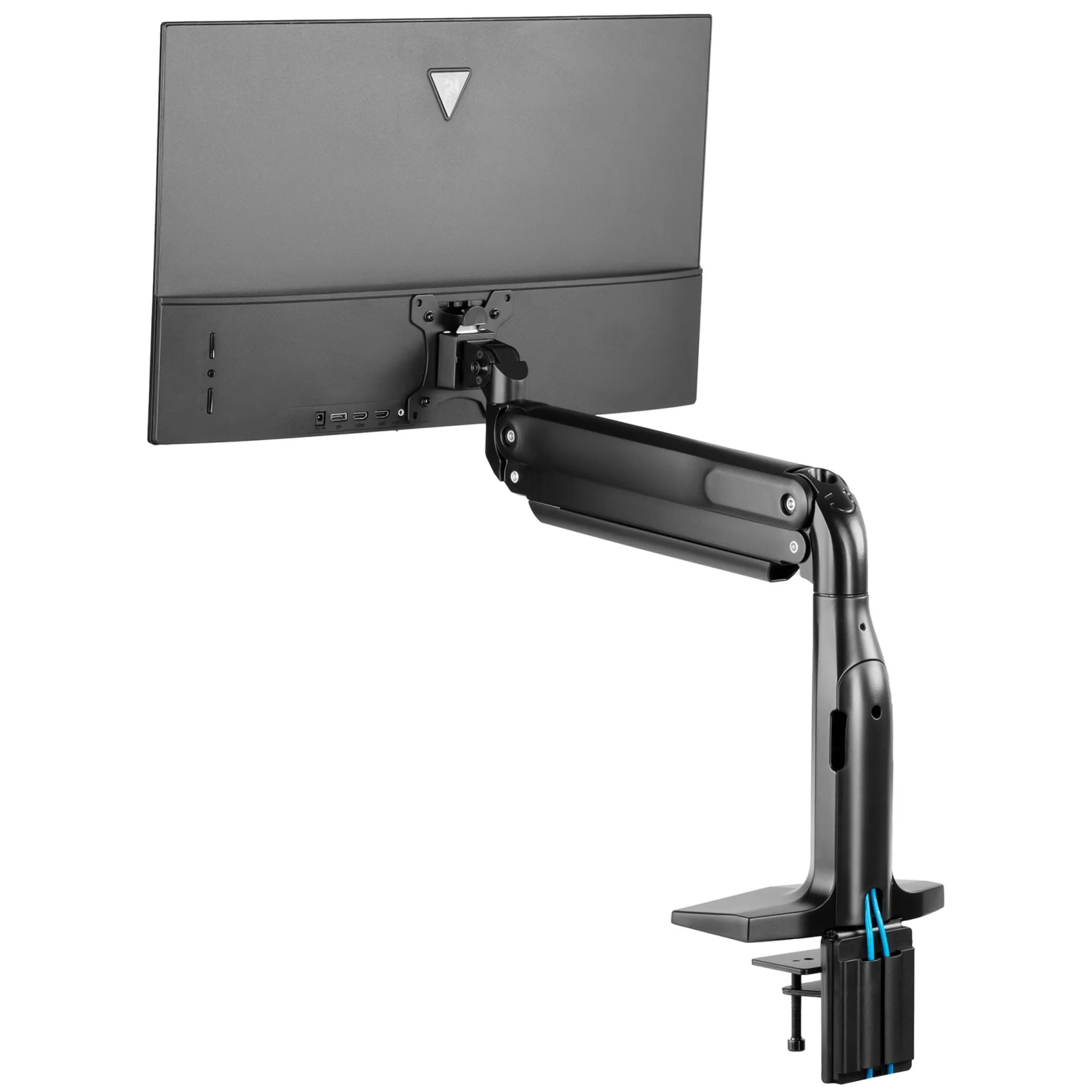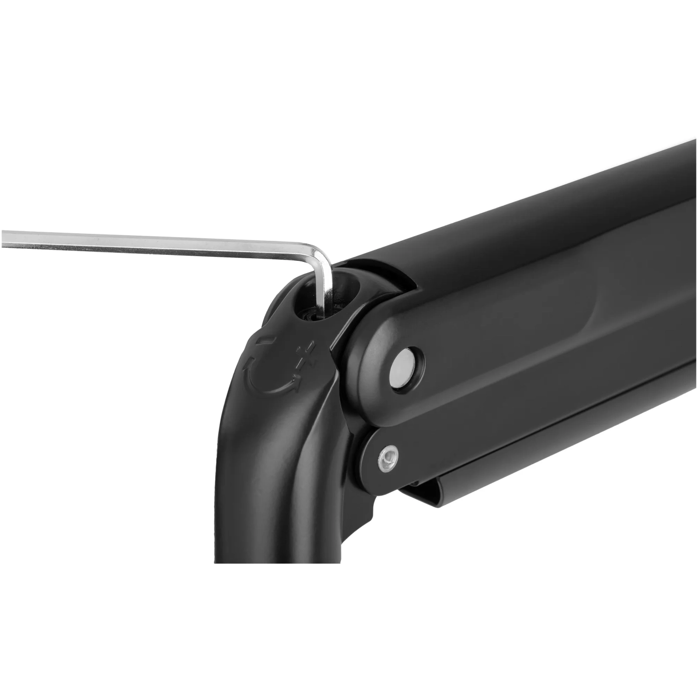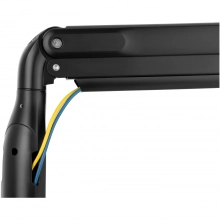 Платформа витримує монітори з діагоналлю від 17 до 43 дюймів, що робить її універсальним рішенням як для стандартних офісних дисплеїв, так і для широкоформатних моделей. Максимальне навантаження до 18 кг гарантує стабільність і безпеку навіть при використанні важких професійних екранів. Вбудований пружинний механізм забезпечує плавне і точне налаштування положення монітора: ви можете легко відрегулювати нахил, поворот і обертання під свої уподобання. Крім того, система прихованої прокладки кабелів дає змогу ефективно організувати дроти, забезпечуючи акуратний і охайний зовнішній вигляд вашого робочого місця.