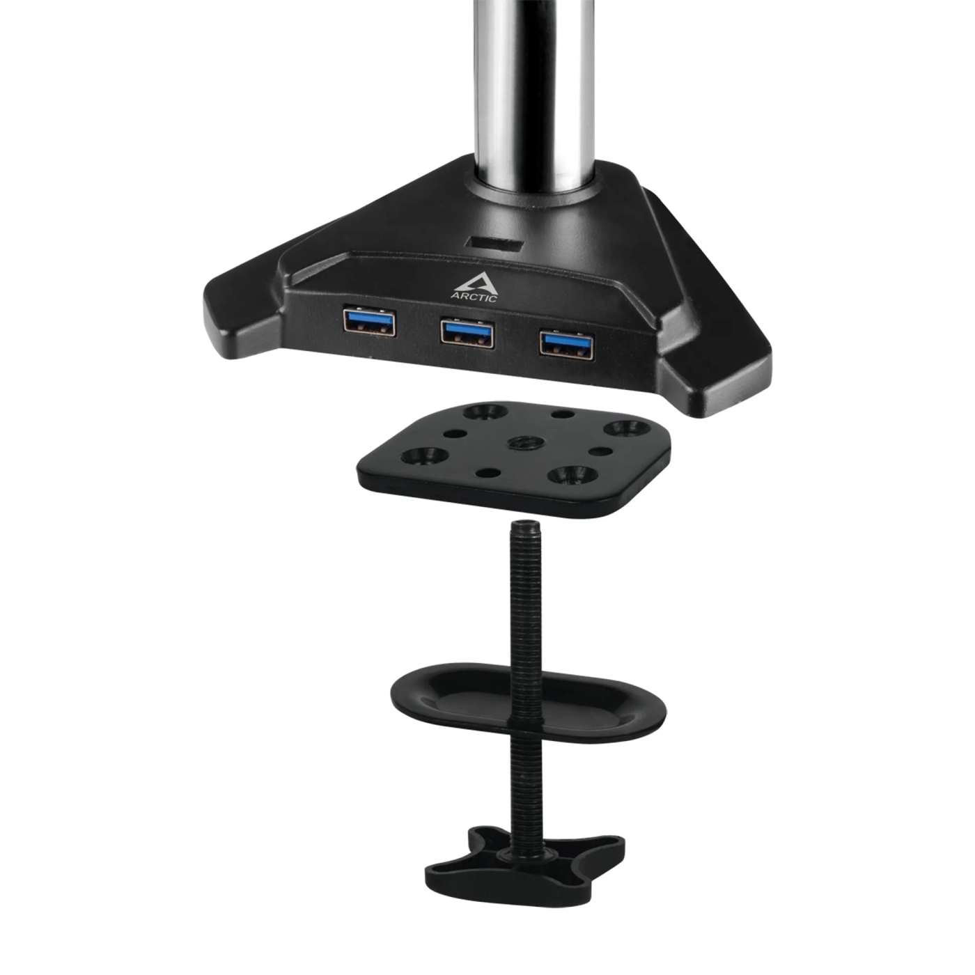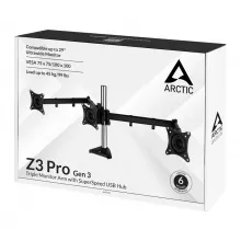 Підтримуючи новітні ультраширокі монітори до 29 дюймів та класичні 16:9 моделі до 32 дюймів, кронштейн Arctic Z3 Pro (Gen 3) здатний витримувати навантаження до 15 кг на кожну руку, забезпечуючи стабільність та надійність. Простота встановлення та регулювання робить його ідеальним вибором для тих, хто цінує зручність та функціональність. Надшвидкісний USB-хаб на чотири порти, розташований прямо на робочому столі, дозволяє легко підключати всі необхідні пристрої, а система керування кабелями позбавляє безладу.