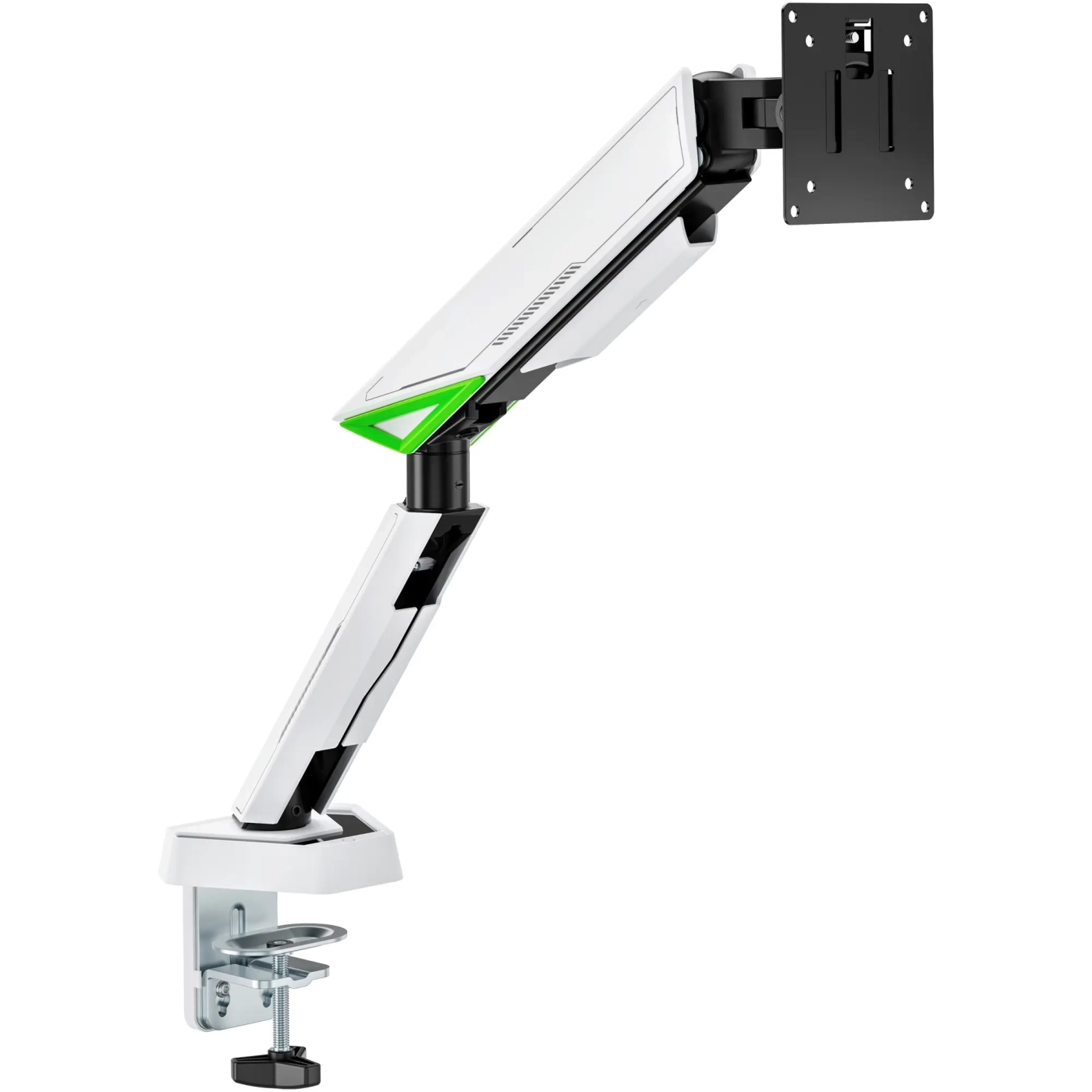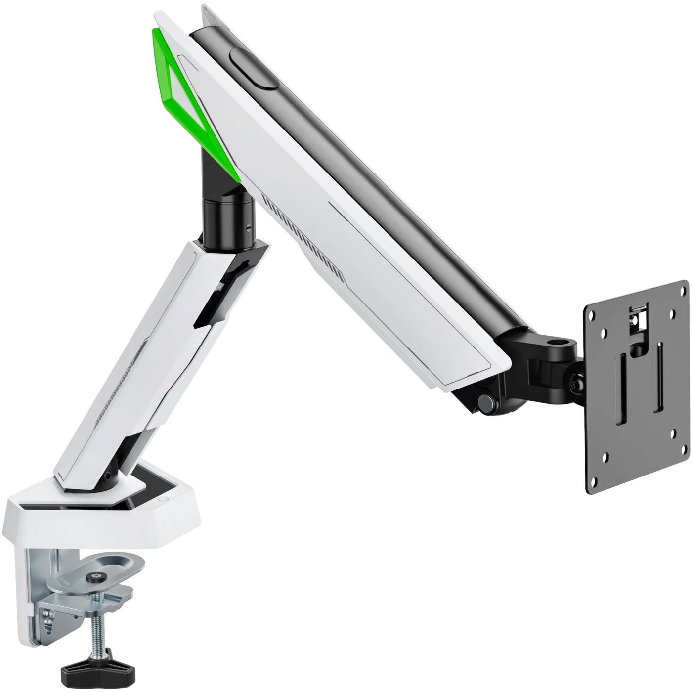 Регульована конструкція кронштейна дає можливість змінювати висоту, кут нахилу та поворот екрана, забезпечуючи максимально комфортне розташування монітора залежно від ваших уподобань. Пружинний механізм дозволяє плавно й легко змінювати положення, а система прихованої прокладки кабелів підтримує акуратний вигляд робочої зони. Завдяки універсальному кріпленню VESA встановлення відбувається швидко та без потреби у складних інструментах.
