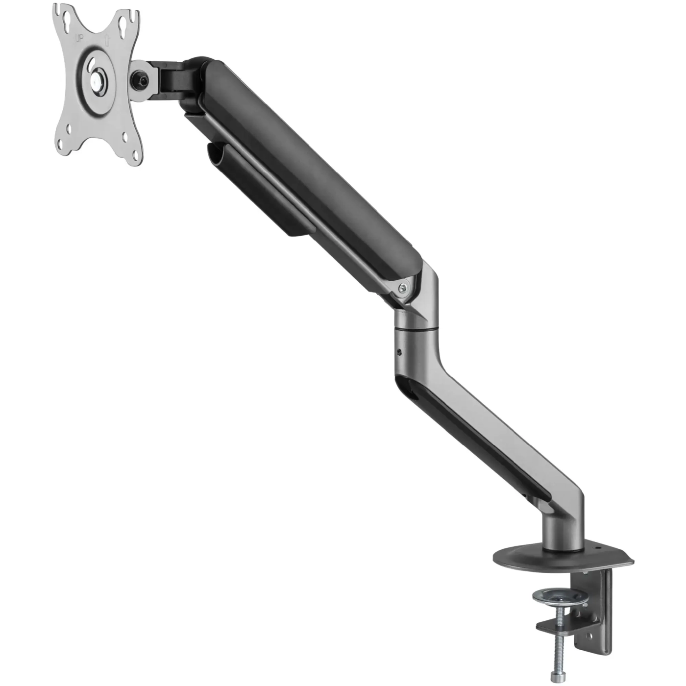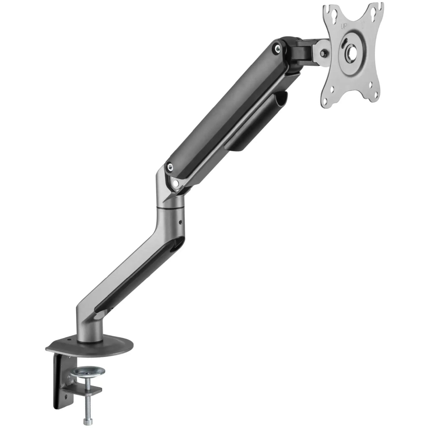 Кріплення для монітора Gembird MA-DA1-05 – це надійний і зручний інструмент для створення сучасного робочого простору. Конструкція виконана з міцного алюмінію та сталі з порошковим покриттям, що гарантує довговічність і акуратний зовнішній вигляд. Кронштейн розрахований на монітори діагоналлю від 17 до 32 дюймів і витримує навантаження від 2 до 9 кг, що робить його універсальним рішенням для більшості сучасних моделей. Сірий колір конструкції гармонійно вписується в інтер'єр будь-якого офісу чи дому.