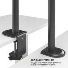 Система кріплення VESA з підтримкою стандартів 75x75 мм і 100x100 мм робить установку швидкою та універсальною. Більш того, в комплект входить знімна VESA-пластина, що суттєво спрощує процес монтажу. Особливу увагу приділено організації робочого простору — кабельні затискачі дозволяють приховати проводи та позбутися хаосу на столі, створюючи чисту та естетичну зону для продуктивної роботи.