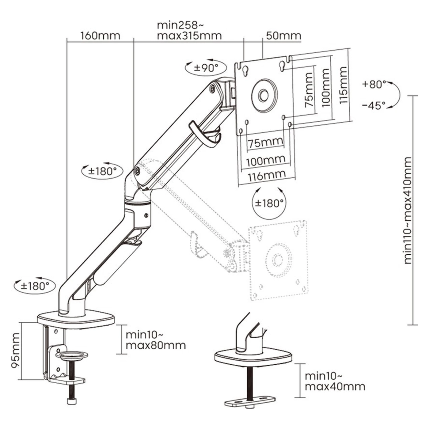Максимальне навантаження кріплення складає 9 кг, що забезпечує сумісність із більшістю сучасних моніторів. Кріплення також сумісне зі стандартом VESA 75x75 мм та 100x100 мм, що дозволяє його використання з широким спектром моніторів різних виробників.