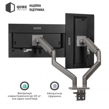 Крепление для монитора (кронштейн) Qube 4520GD до 2x45" 2-20 кг / 75х75 / 100х100 / Нахил / Поворот / Висота / Обертання / 2-20 кг (на 1 монітор) / 24 міс / 17"-45" / Для монітора / Qube / 4520GD