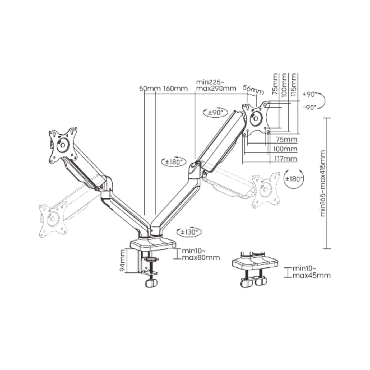 Кронштейн легко регулюється у вертикальній та горизонтальній площинах, забезпечуючи зручність у налаштуванні робочого місця. Завдяки цьому, ви зможете налаштувати монітор під потреби вашого конкретного робочого процесу: будь то перегляд мультимедійного контенту, робота з текстами чи графікою.